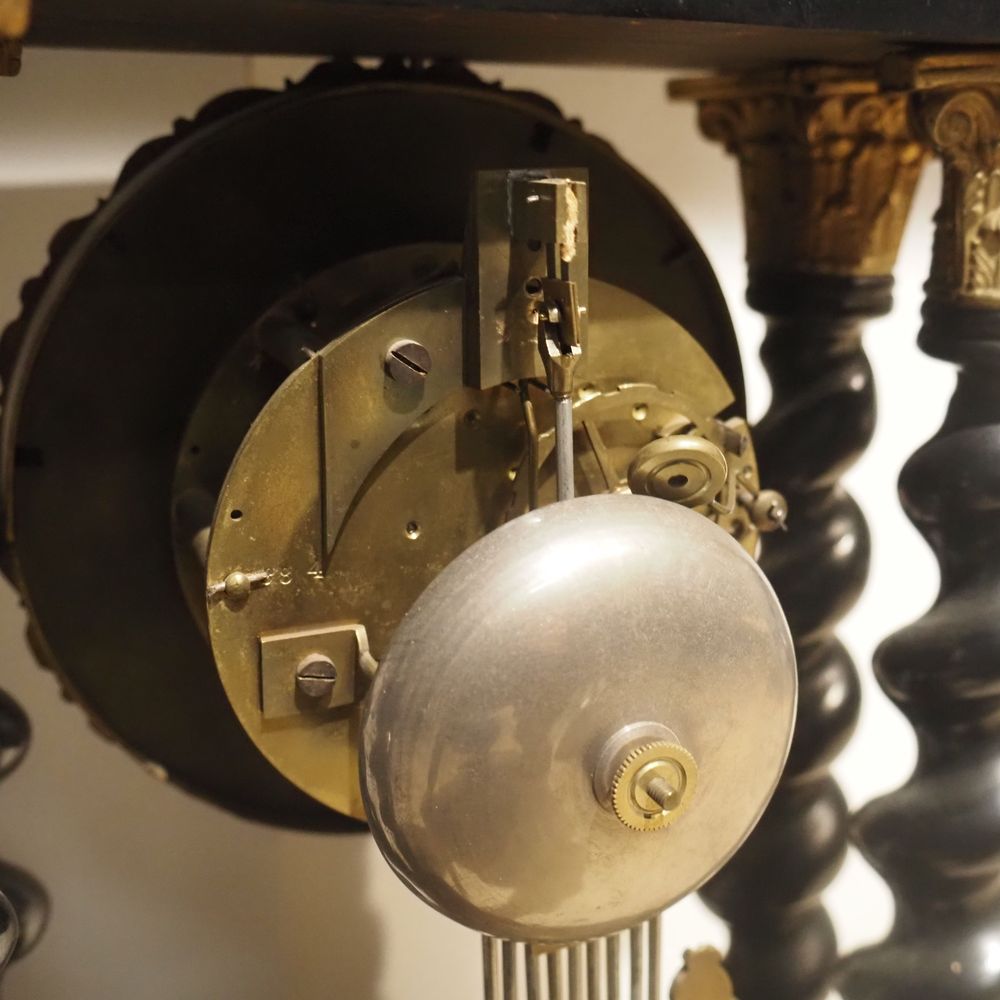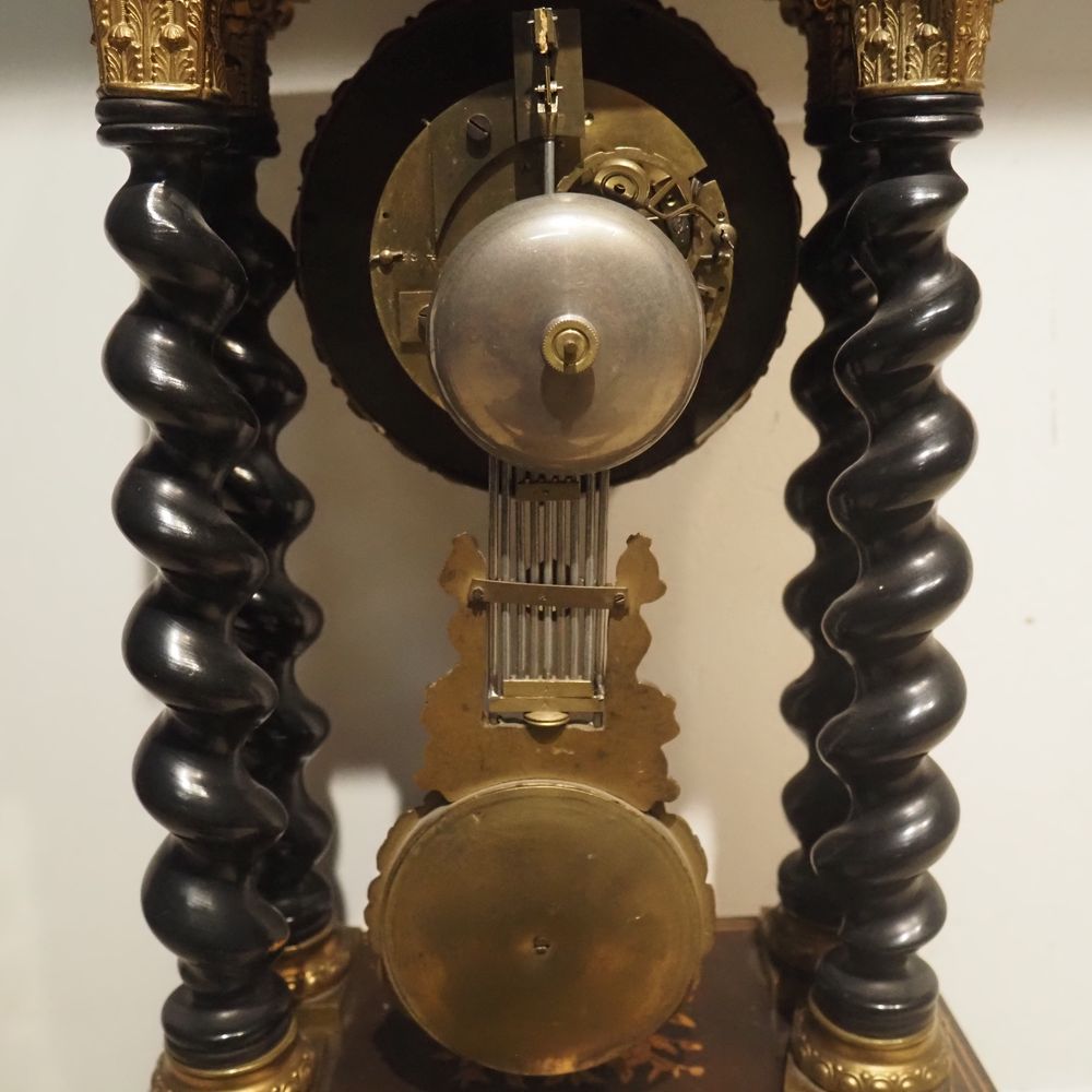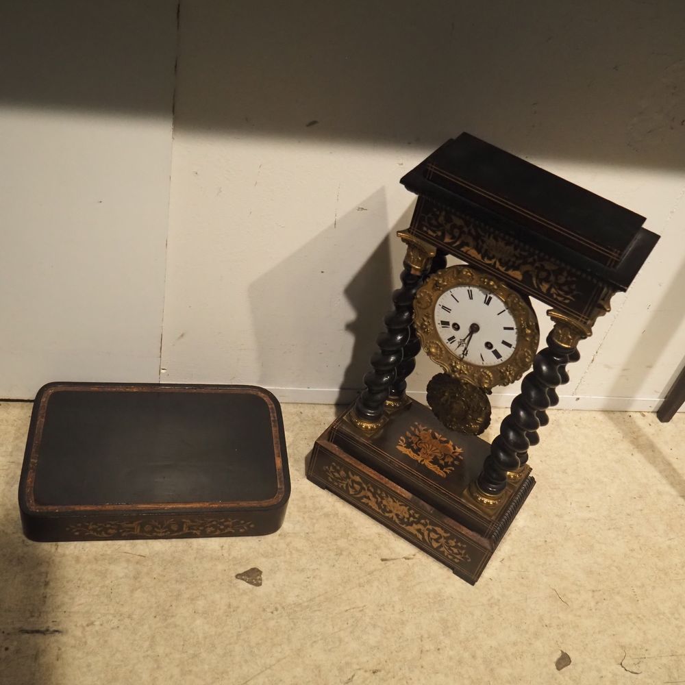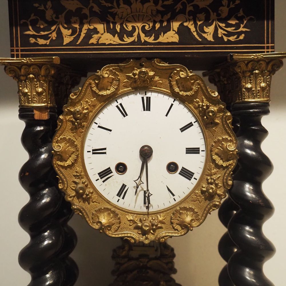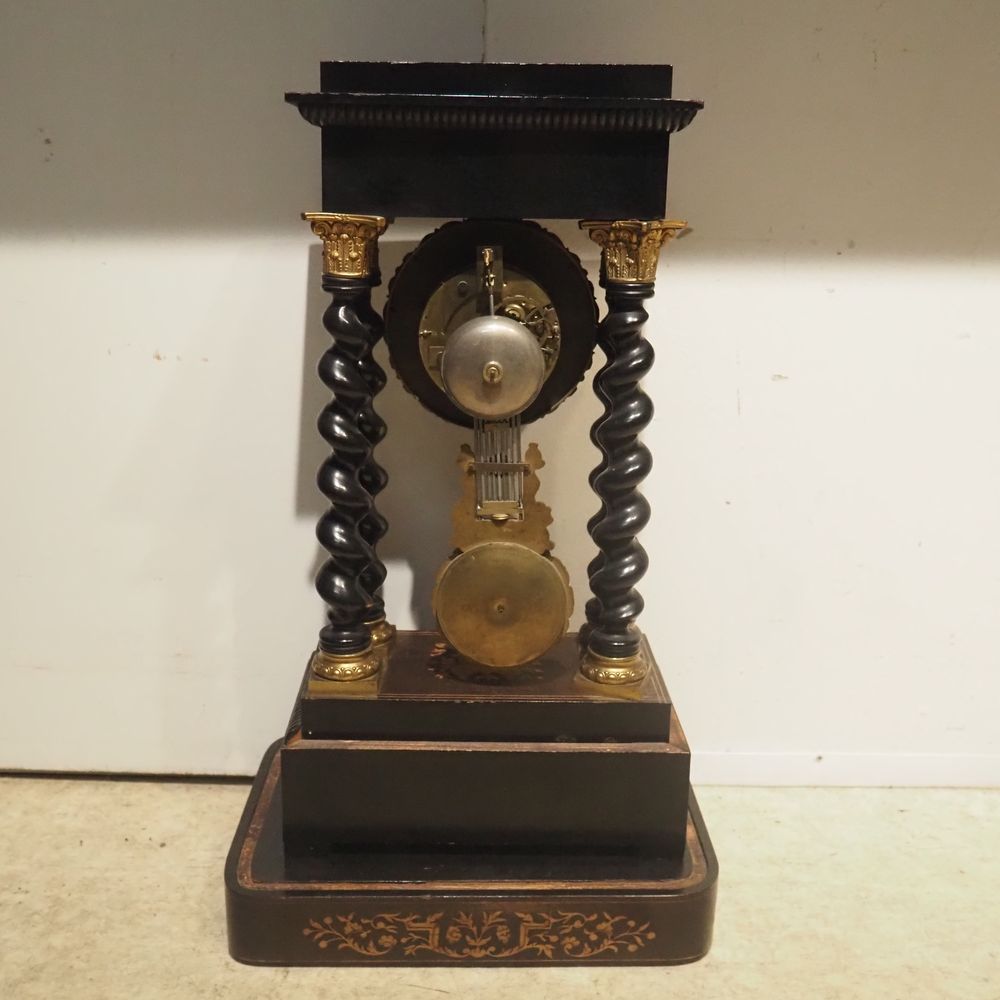 Horloge avec balancier Napoléon III : Bois laqué noir et marqueterie
