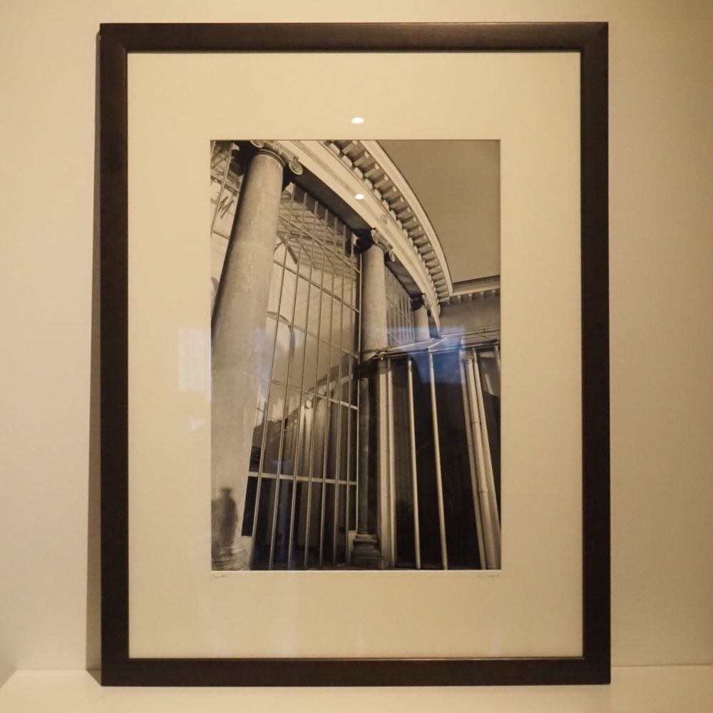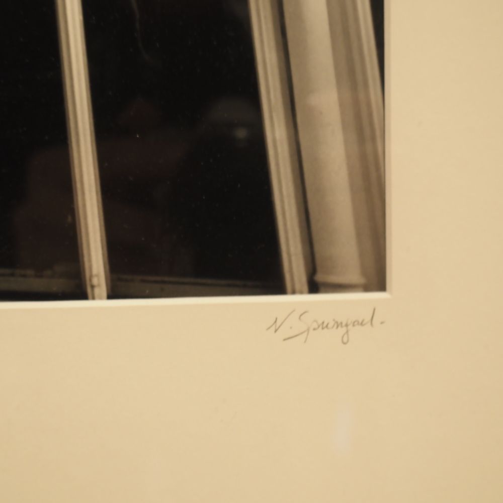 Nicolas Springeal : Photographie noir et blanc, vue architecturale, « Bruxelles », signée au crayon en bas à droite, encadrée sous verre, dim à vue: 56,5 x 38 cm