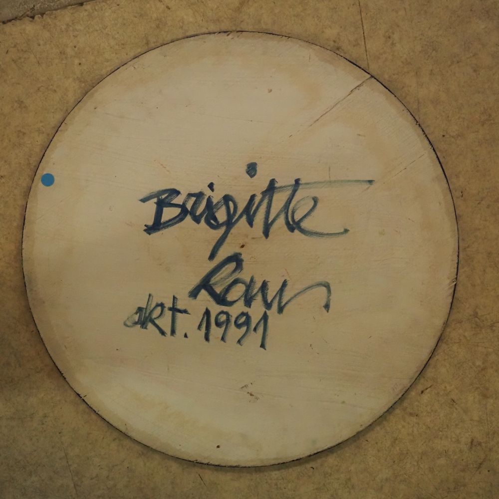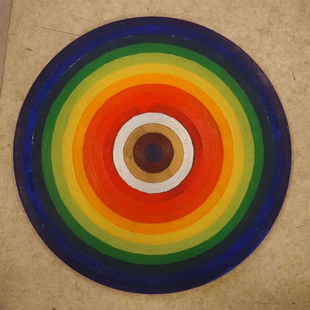 Julio Le Parc dans le gout : Huile sur panneau triplex circulaire vers 1970, cercles concentriques de couleurs différentes, signée au dos, diam: 59 cm