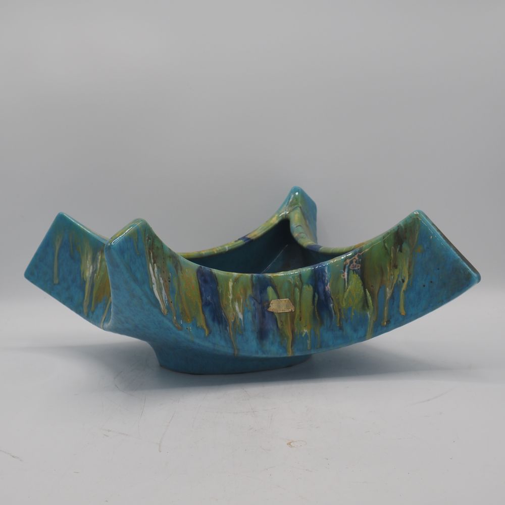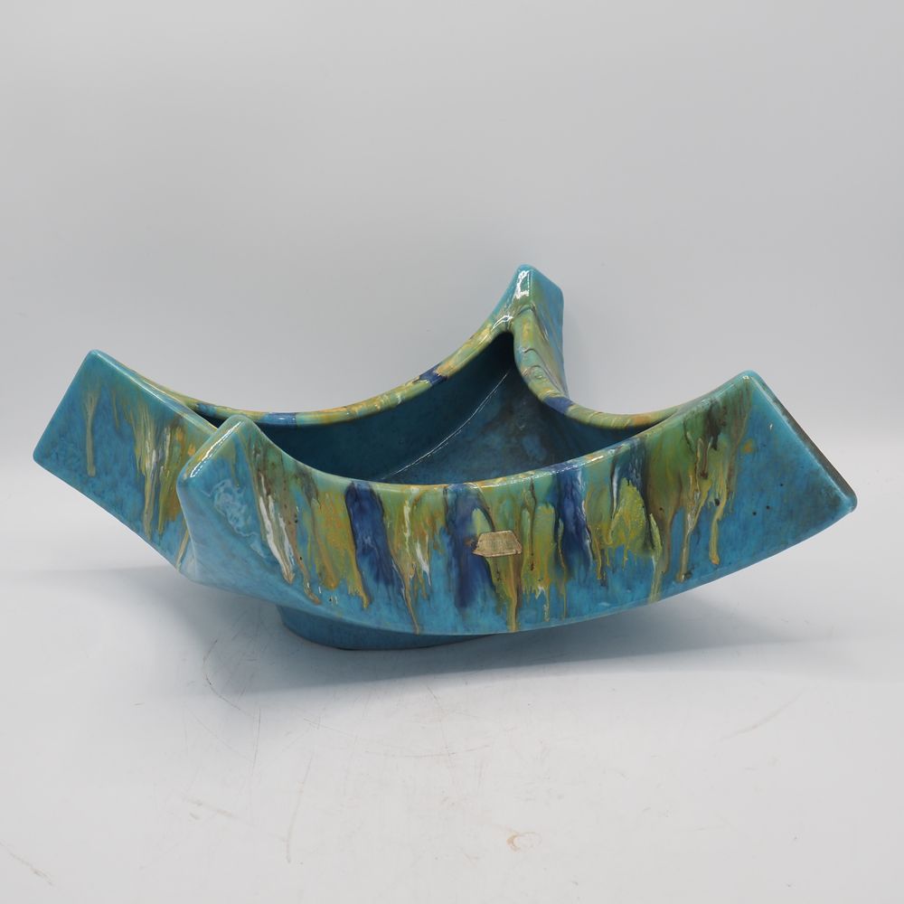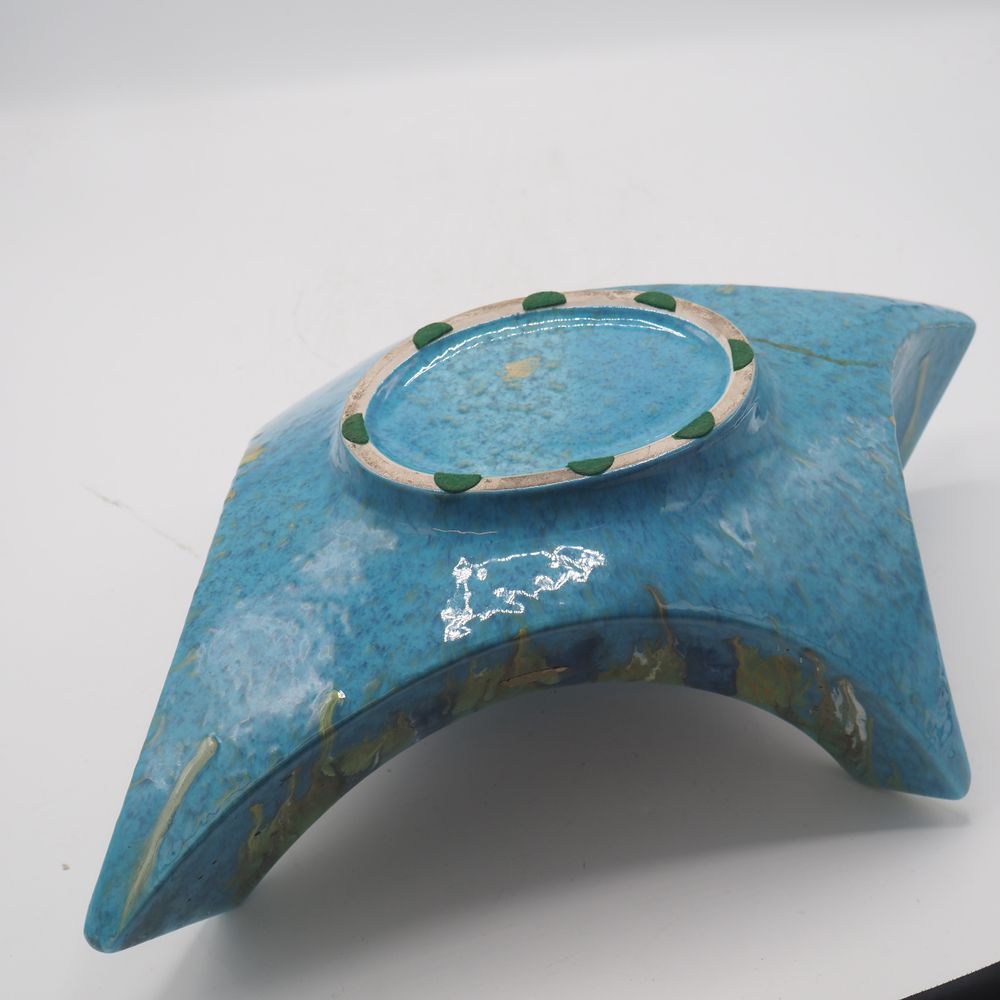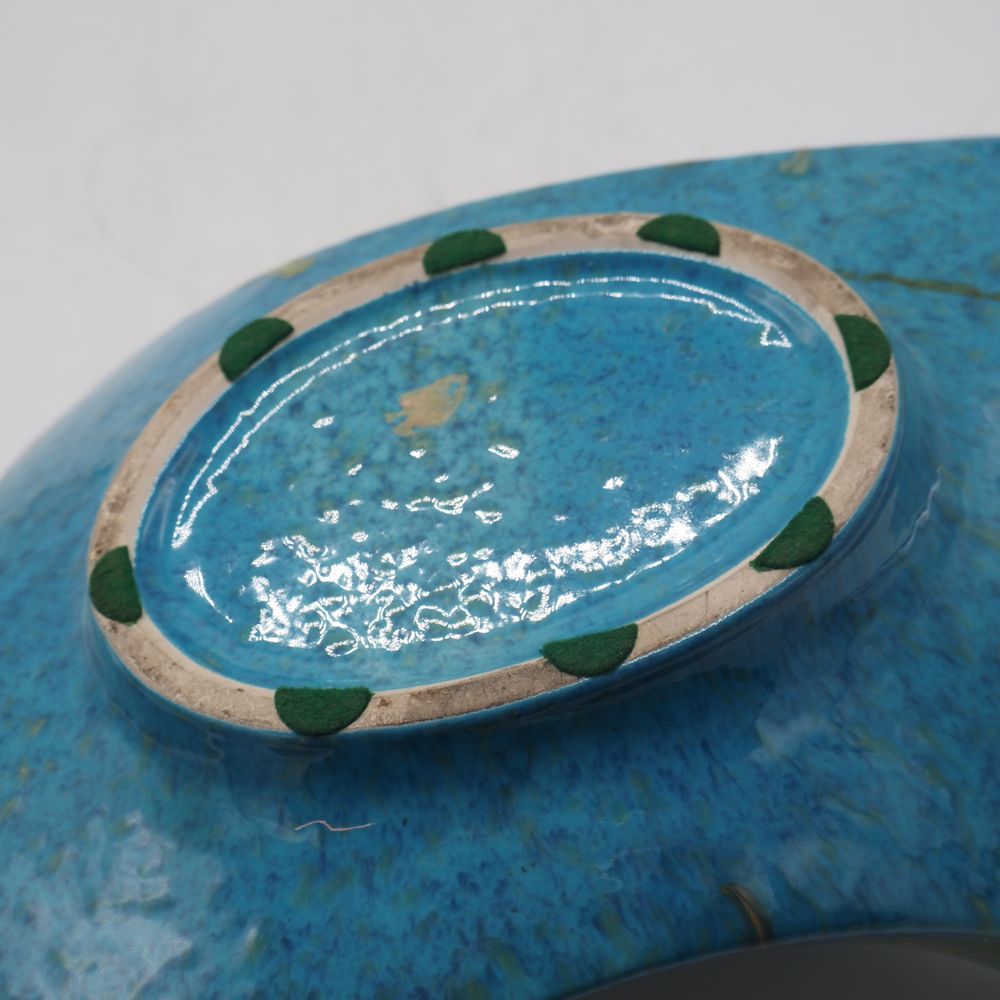 Bertoncello : Coupe à fruits vers 1960, céramique émaillée turquoise, porte l’étiquette, H: 15, L: 43, P: 28 cm