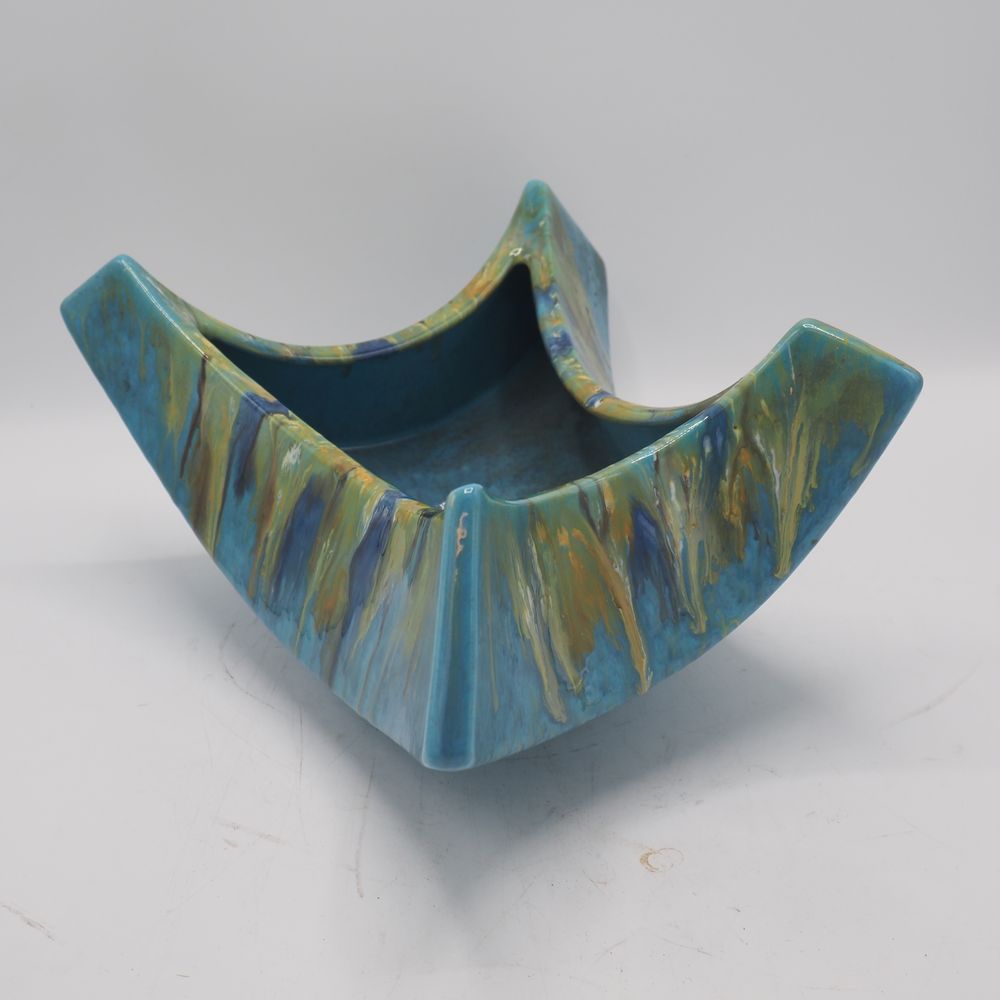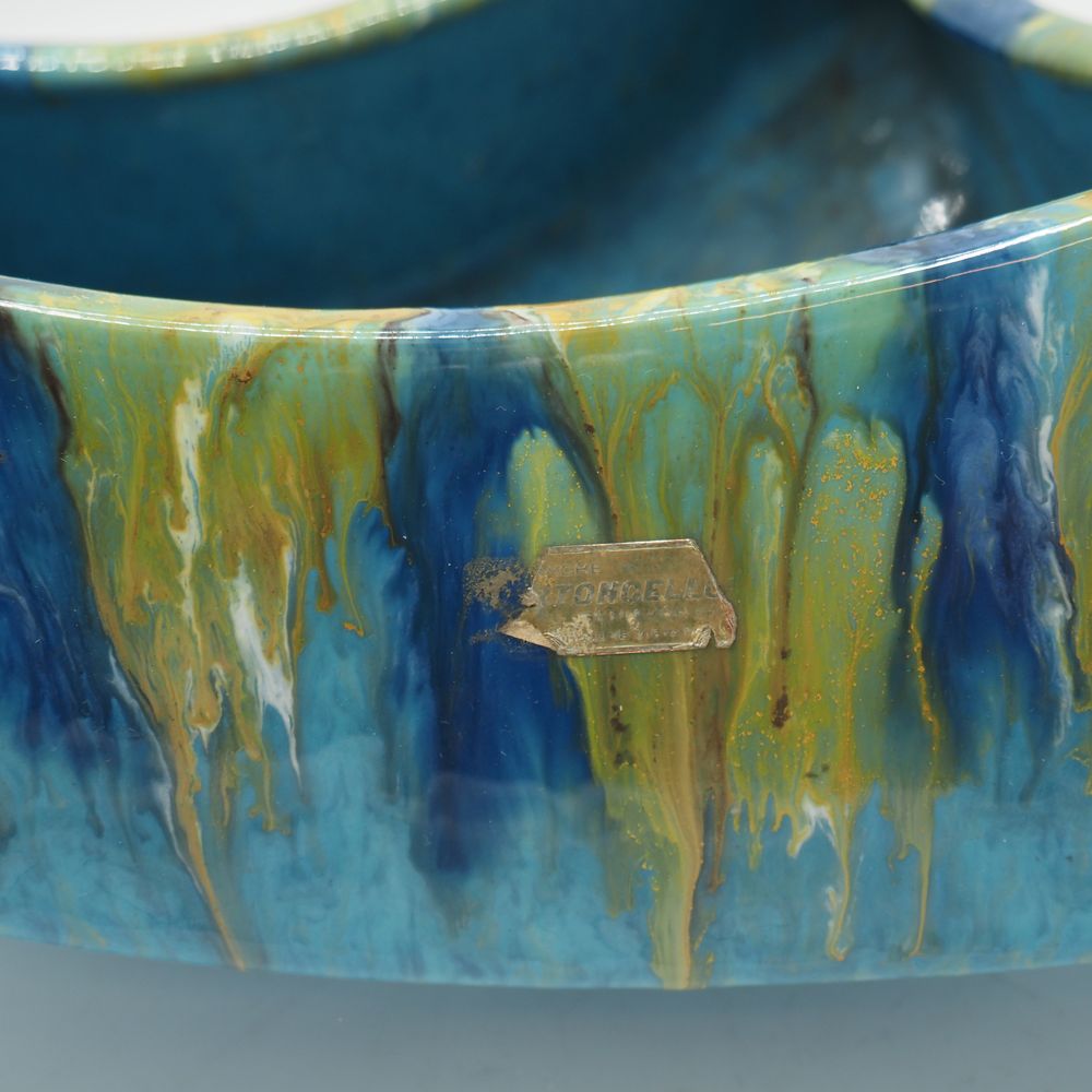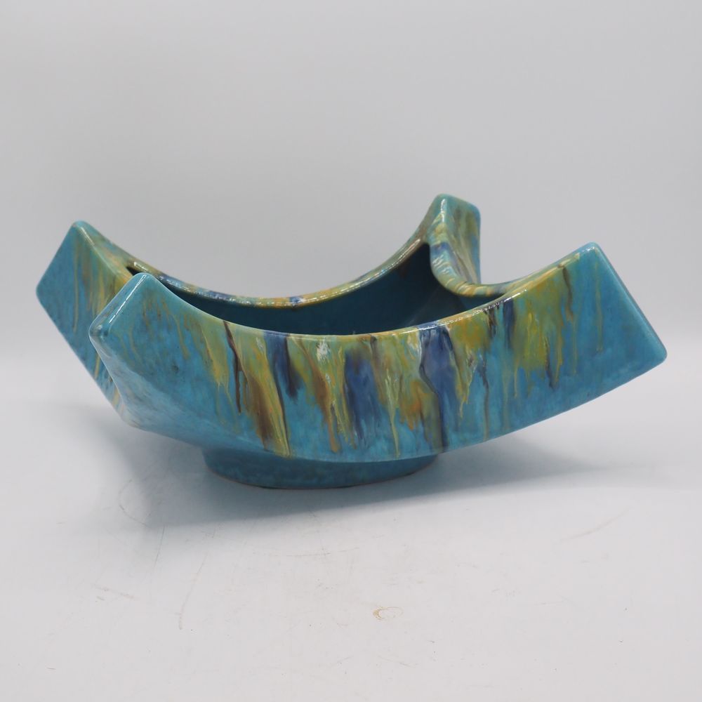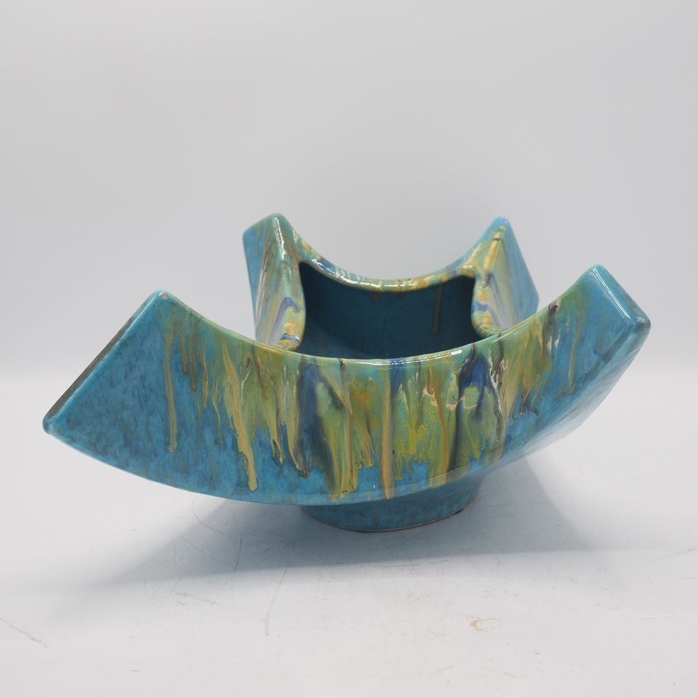 Bertoncello : Coupe à fruits vers 1960, céramique émaillée turquoise, porte l’étiquette, H: 15, L: 43, P: 28 cm