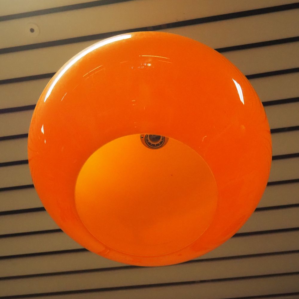 Vistosi dans le gout / Murano : Suspension sphérique, verre soufflé orange, diam: