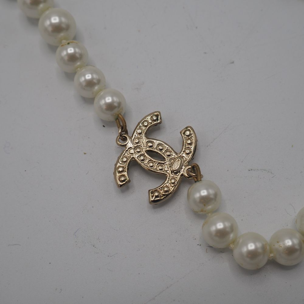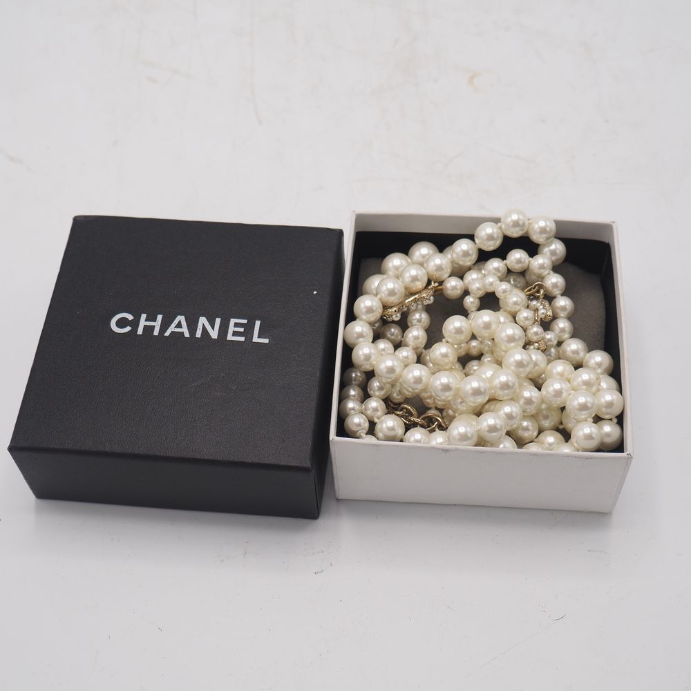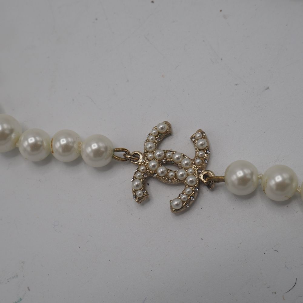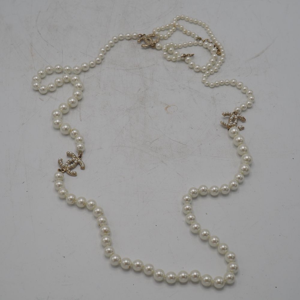 Chanel : Sautoir de perles nacrées, estampillé Chanel + 3 doubles C, L totale: 157 cm