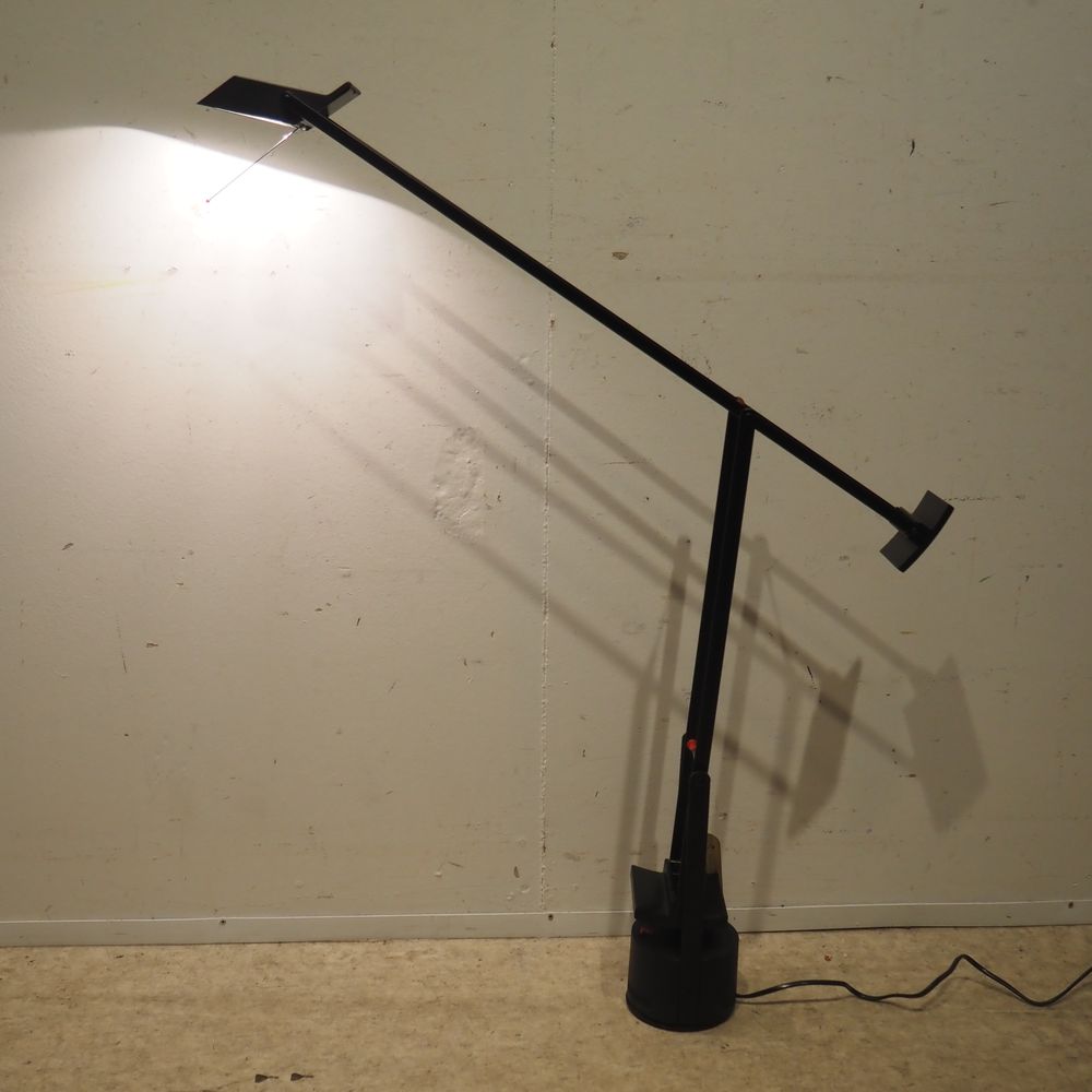 Shapper Richard / Artemide : Lampe de bureau, modèle Tizzio, dessiné en 1972, métal laqué noir, base avec transformateur à basse tension, état d’origine proche du neuf