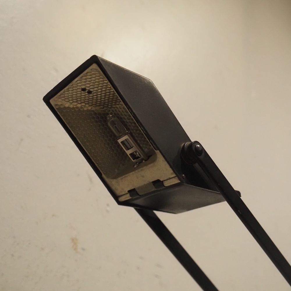 Shapper Richard / Artemide : Lampe de bureau, modèle Tizzio, dessiné en 1972, métal laqué noir, base avec transformateur à basse tension, état d’origine proche du neuf