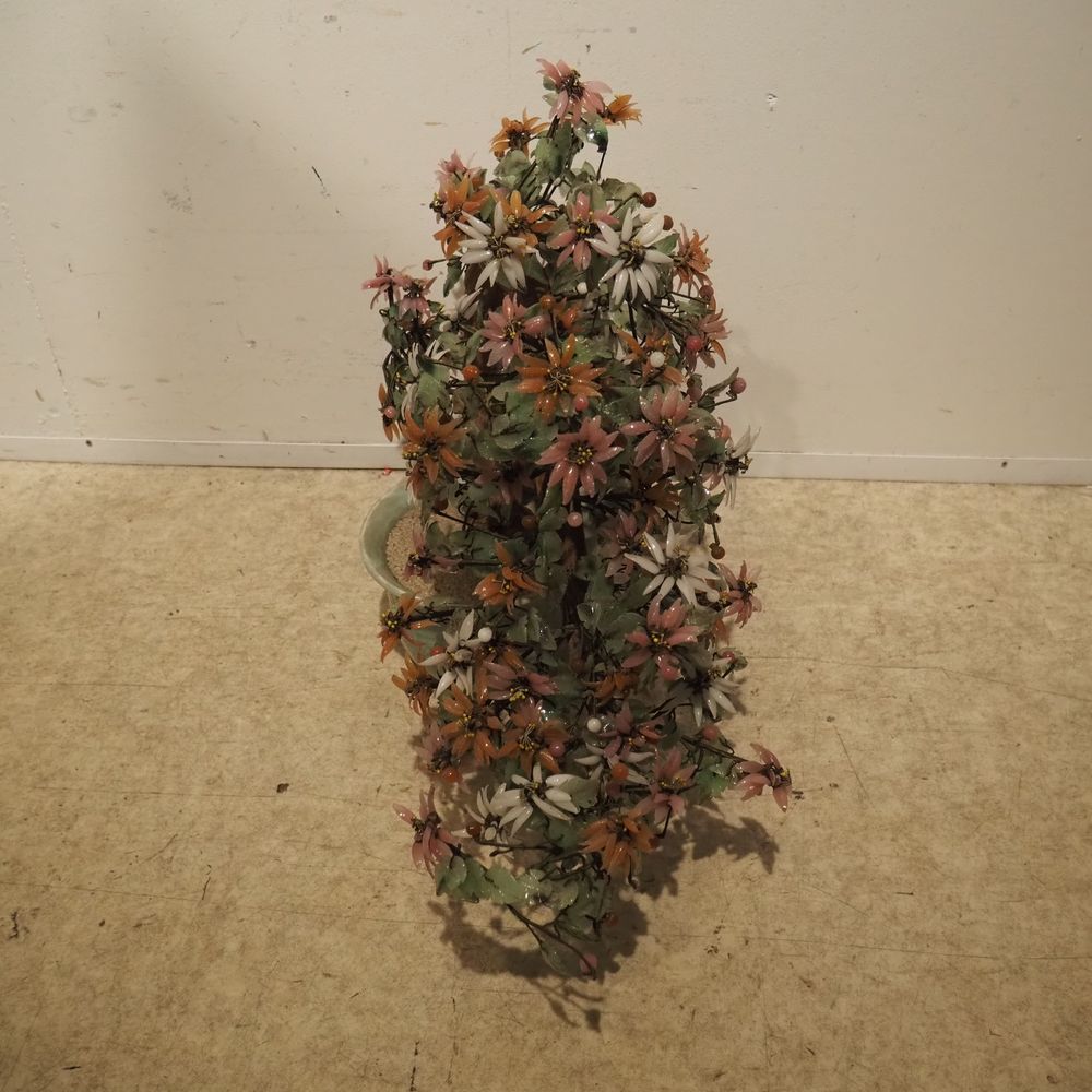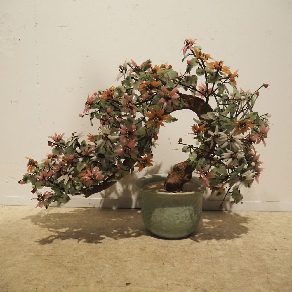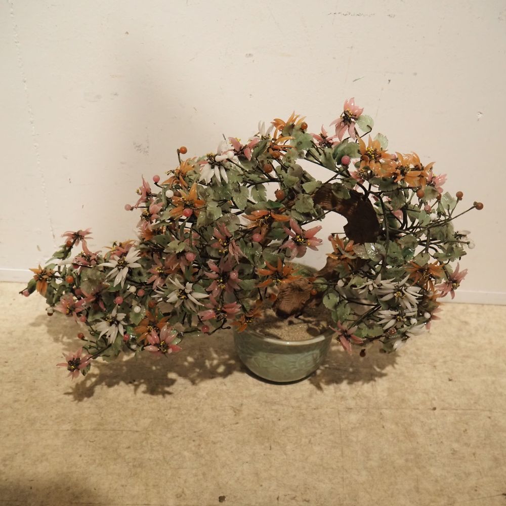 Arbuste japonais vers 1980 : Bois, porcelaine et verre, H: 47, L: 63, P: 28 cm