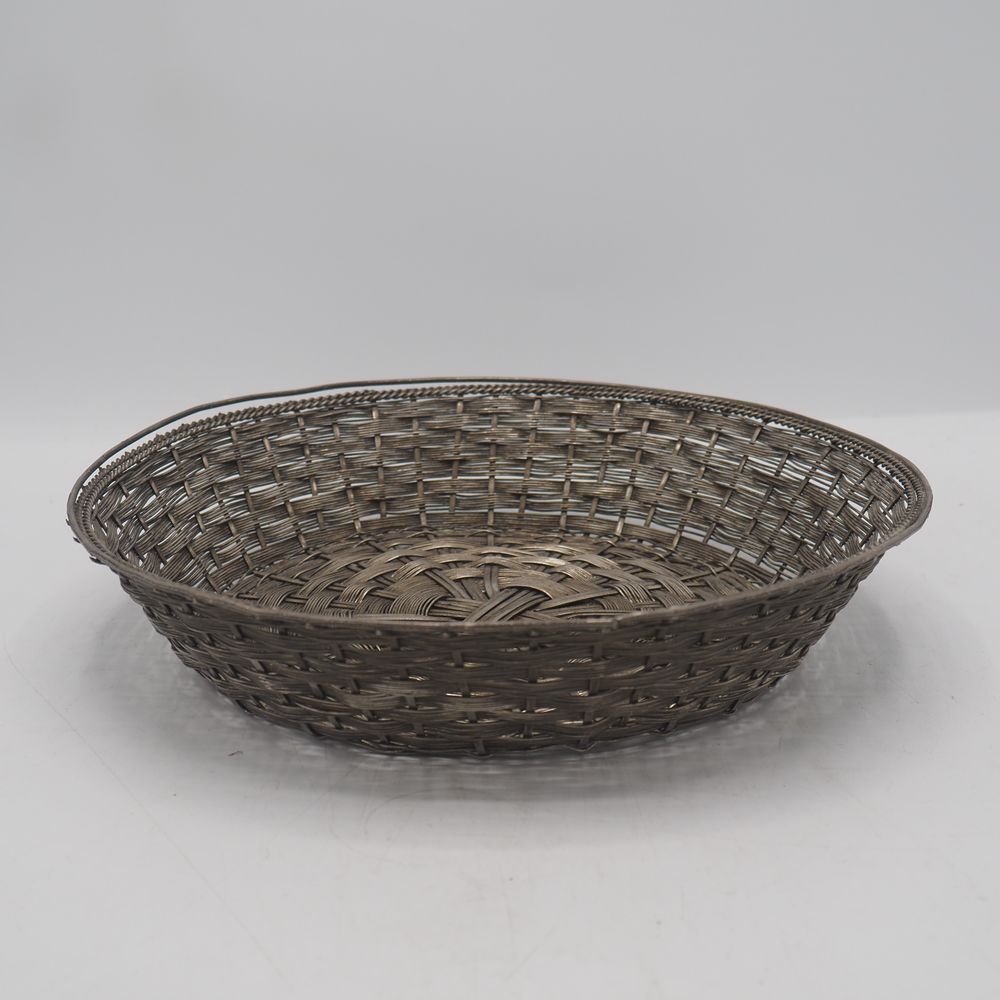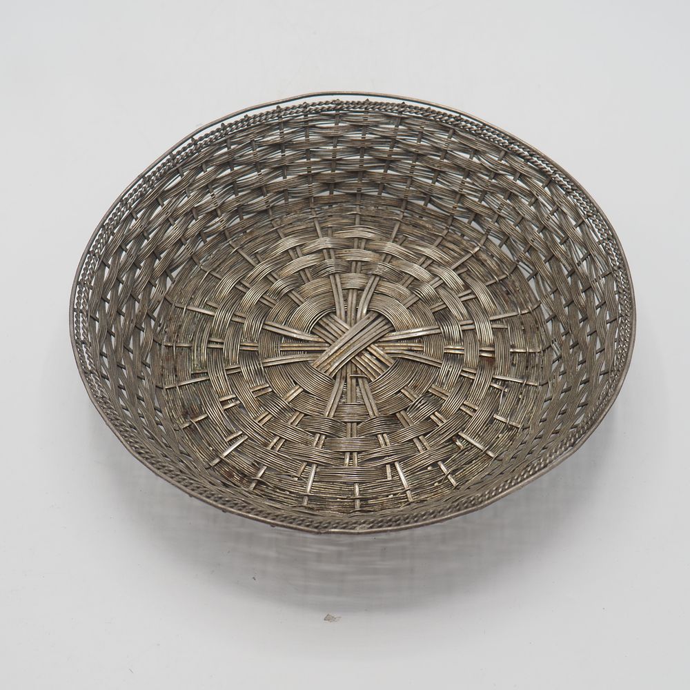 Corbeille à pain vers 1930 : Fils de métal argenté entrelacés, diam: 25,5 cm