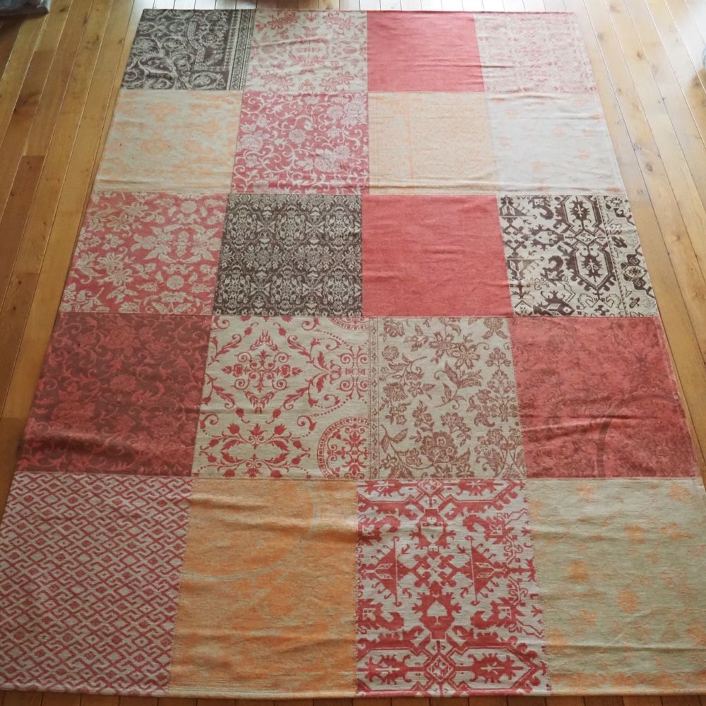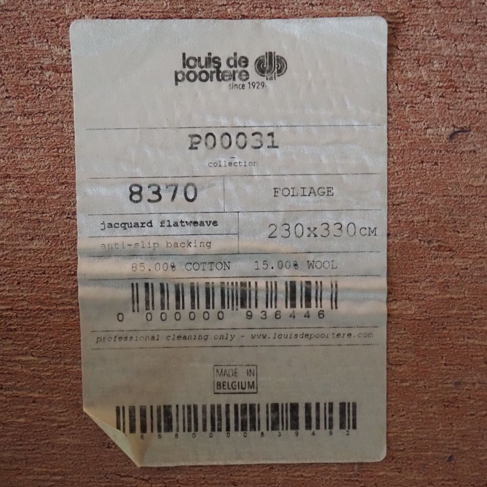 Louis De Poortere : Tapis mécanique, 85% coton et 15% laine, modèle Foliage, composé de 20 carrés de couleurs, dim: 230 x 330 cm