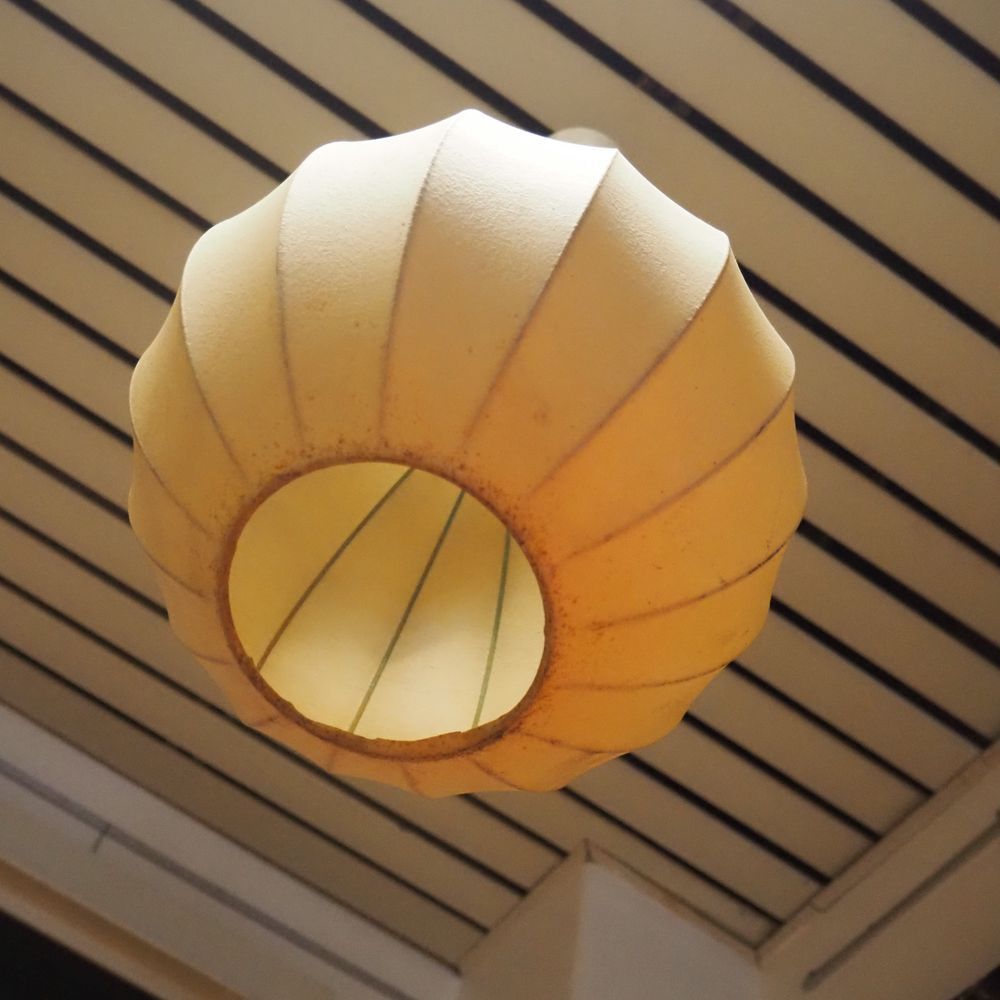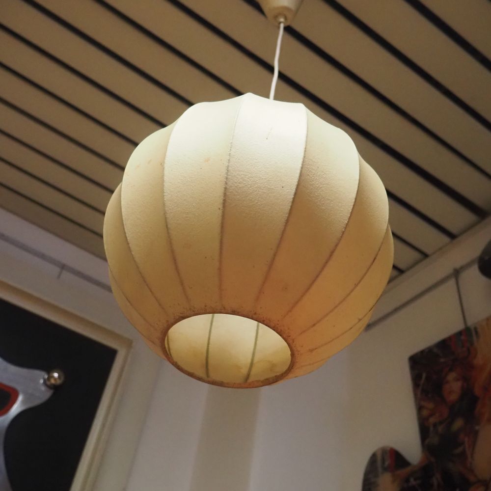 Georges Nelson dans le gout : Suspension globulaire, fils d’acier et garnie de cocon, diam: 30 cm