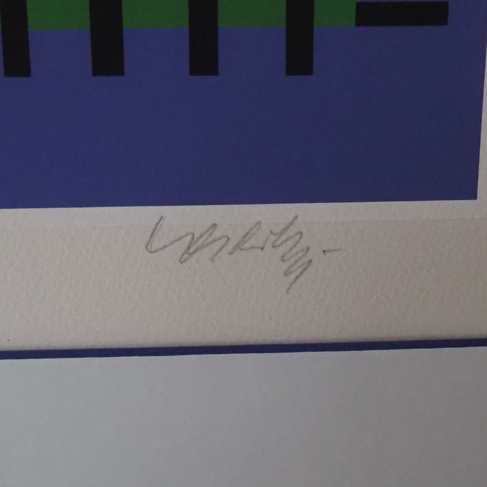 Victor Vasarely 1906-1997 : Sérigraphie couleur, composition cinétique, signée dans la marge en bas à droite, encadrée sous verre, dim image: 54 x 52 cm