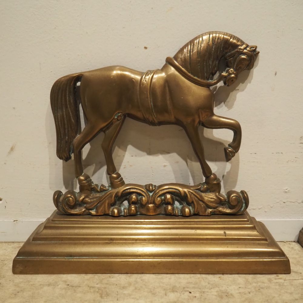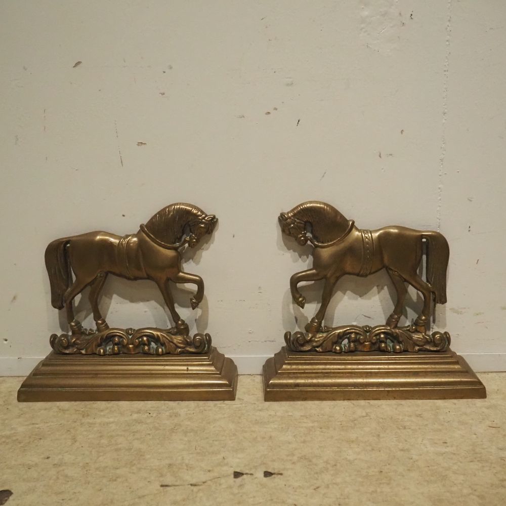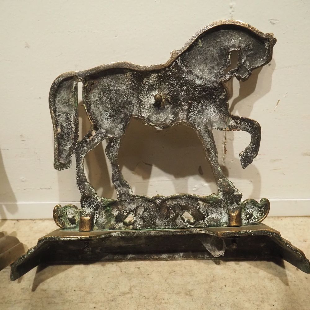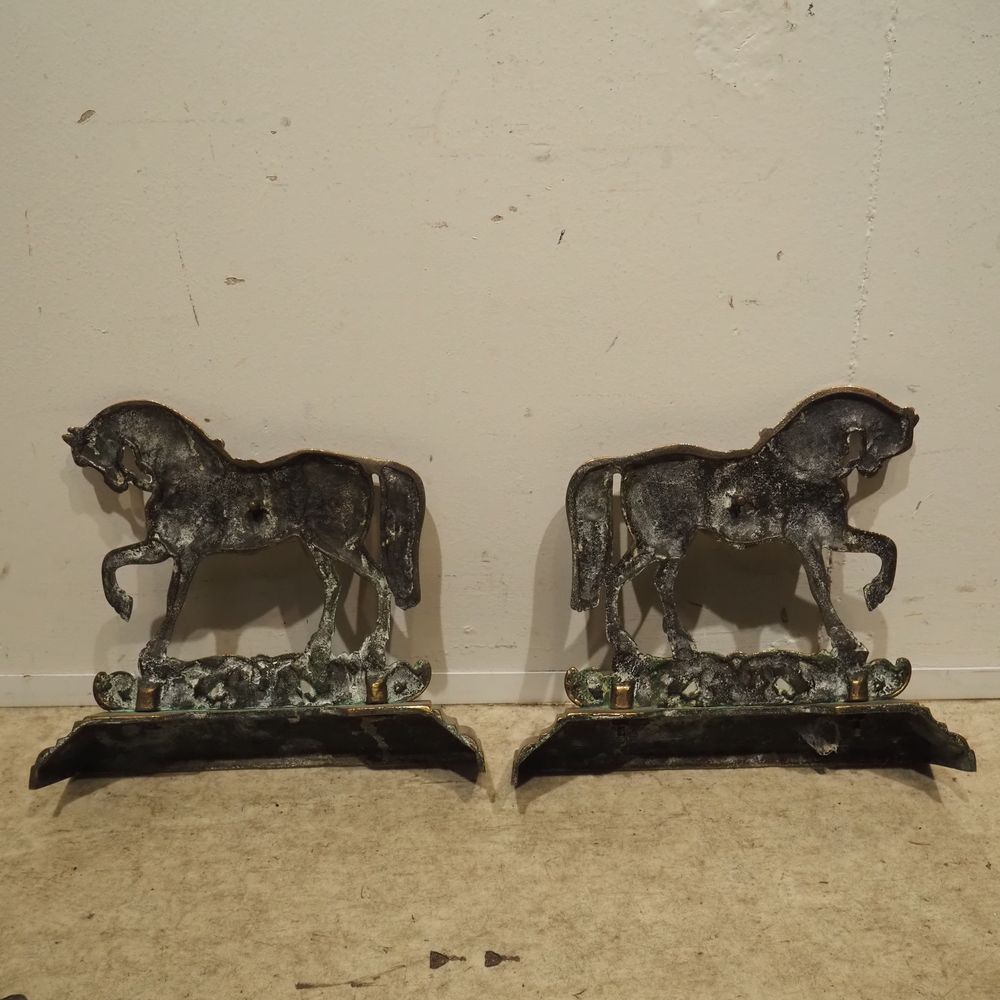 Lot de 2 calles porte : Bronze patiné, chevaux, H: 28 cm
