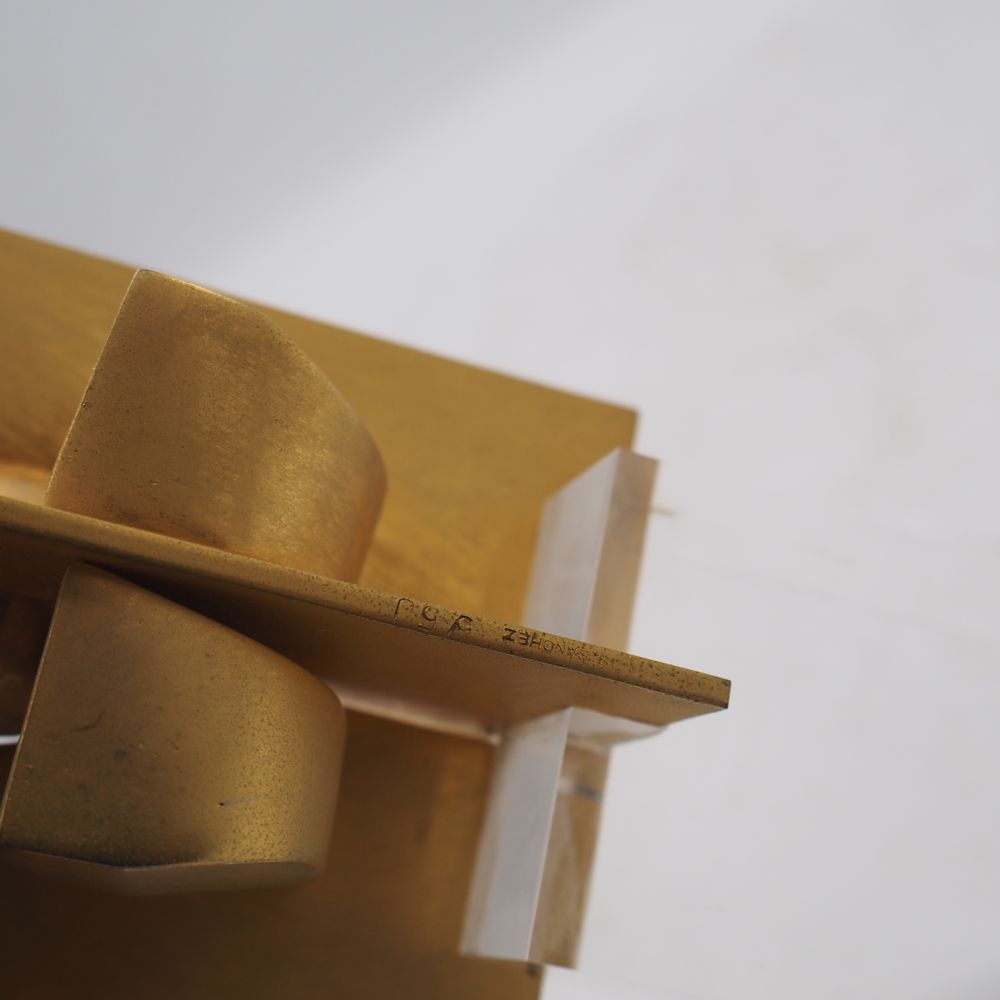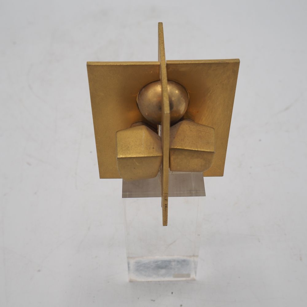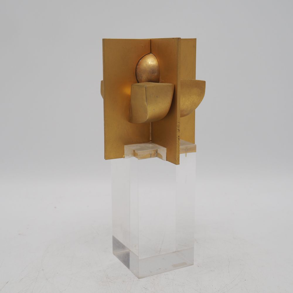 José Luis Sanchez 1926 / 2018 : Sculpture vers 1970, bronze doré, plusieurs éléments, socle en plexiglas, signée et numérotée 5/50, H totale: 18, L: 7,8, P: 7,8 cm