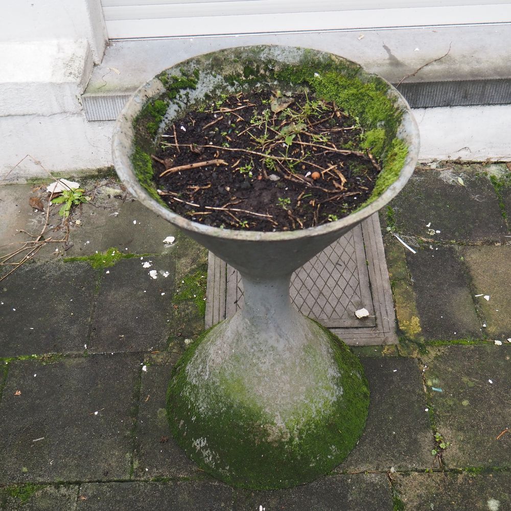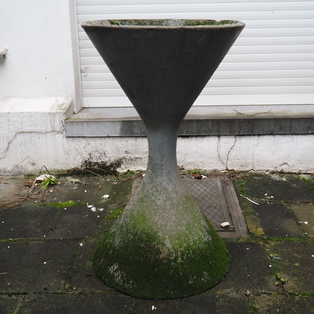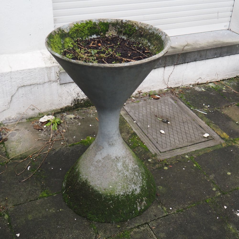 Willy Guhl 1915-2004 : Jardinière basse vers 1950, modèle diabolo, (éclat au col), H: 71, diam: 42 cm