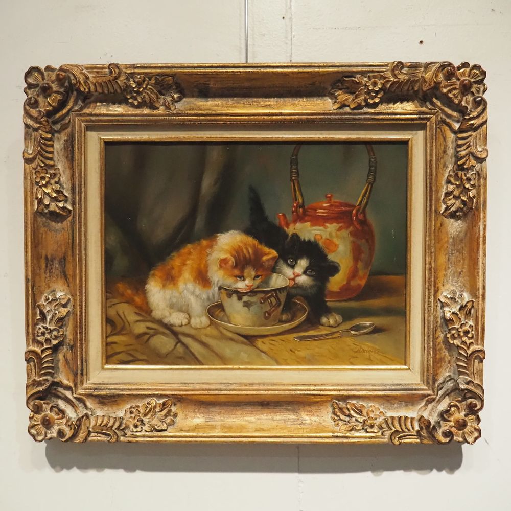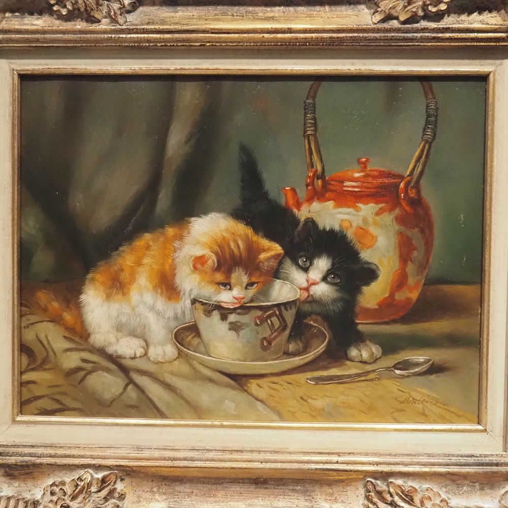Andries : Huile sur toile, 2 chatons, signée en bas à droite, dim: 30 x 40 cm