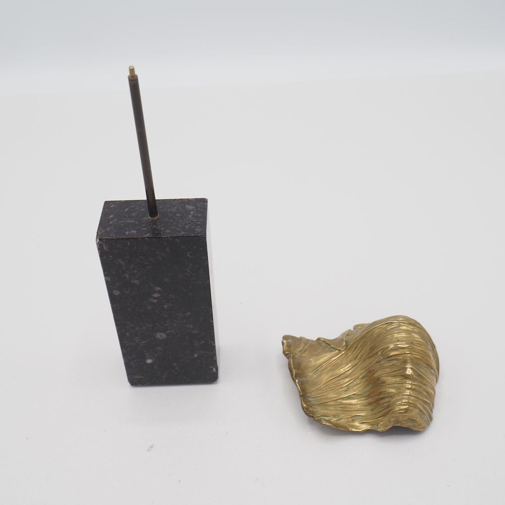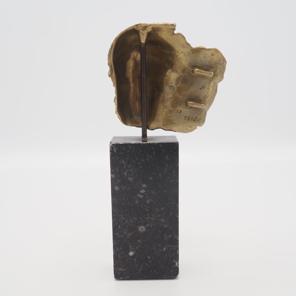 Mitoraj Igor (1944-2014) / édition pour Artcurial : Sculpture/bijou pendentif, « visage envolée », datée 1979, bronze poli, sur socle de marbre, signée sur le front et numérotée 217/250, + certificat Artcurial, H: 16 cm