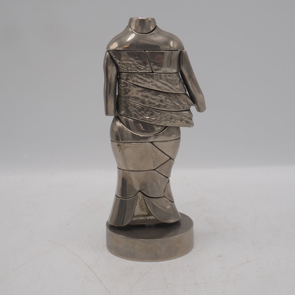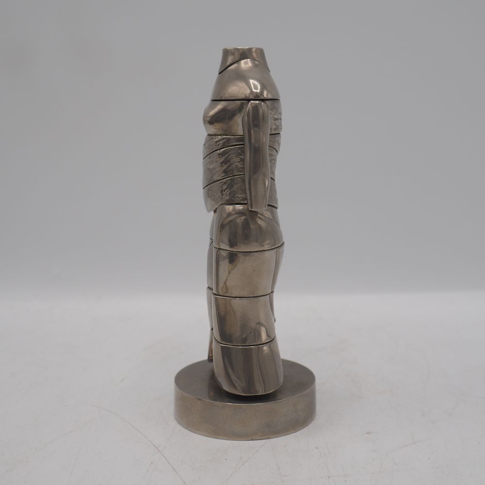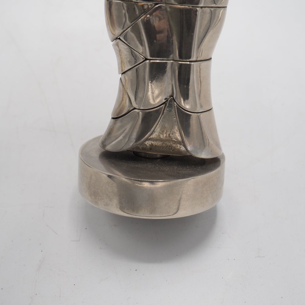 Miguel Berrocal Ortiz (Malaga 1933-2006) : Sculpture Opus 109, « Mini Cariatide », année 1968/1969, alpaca nickelé, 26 éléments démontables, signée et numérotée 4671 sur 9500 exemplaires, Hauteur avec socle : 15 cm