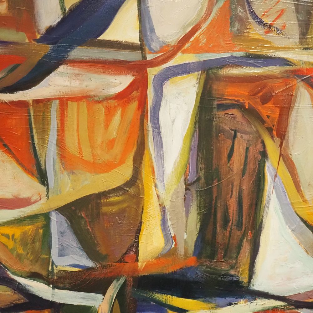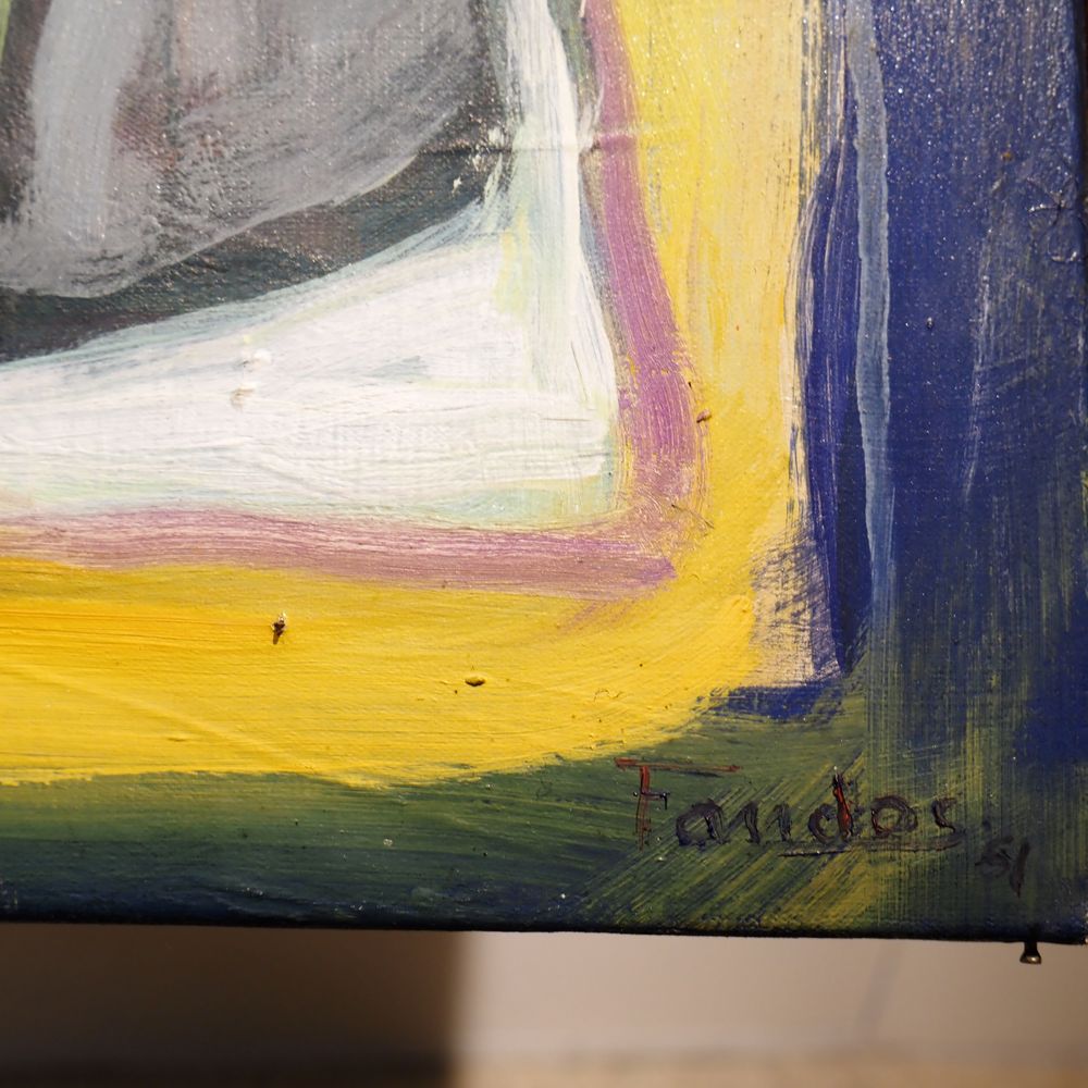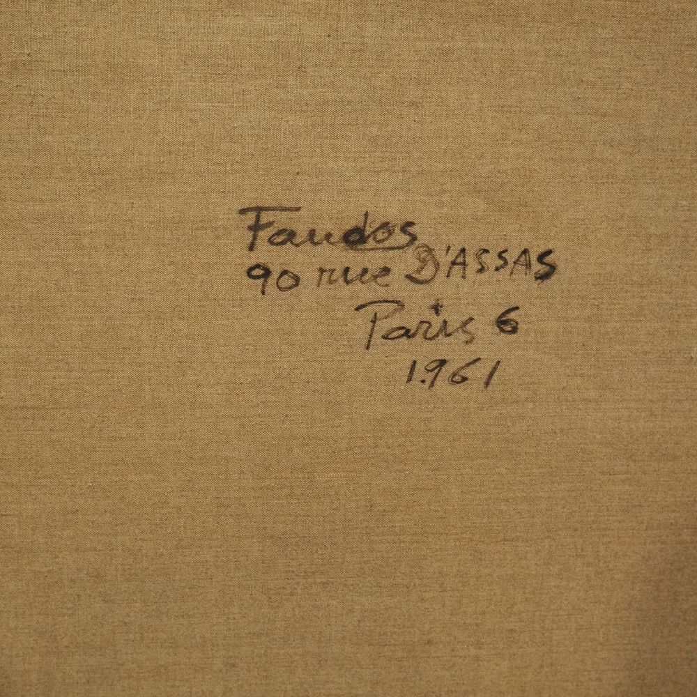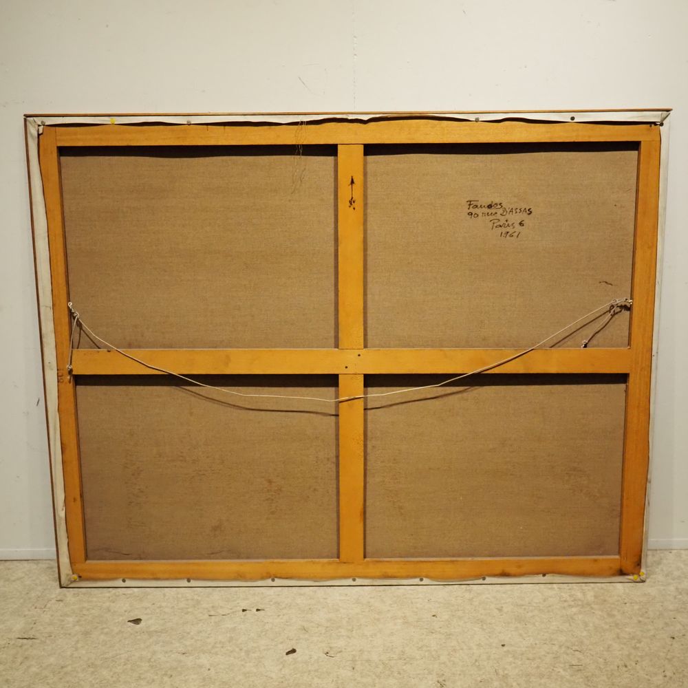 Faudos : Huile sur toile, composition abstraite, signée au dos, datée 1961, dim: 114 x 146 cm