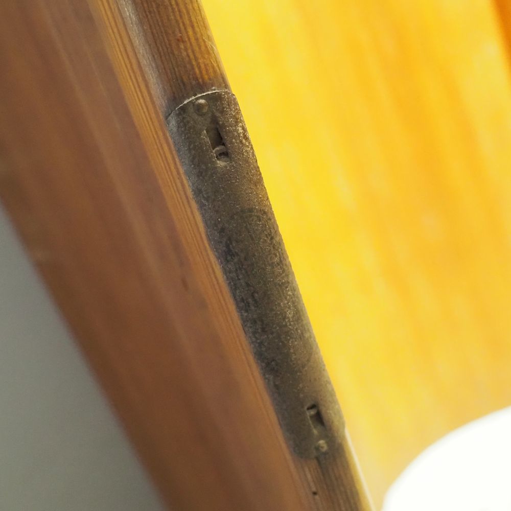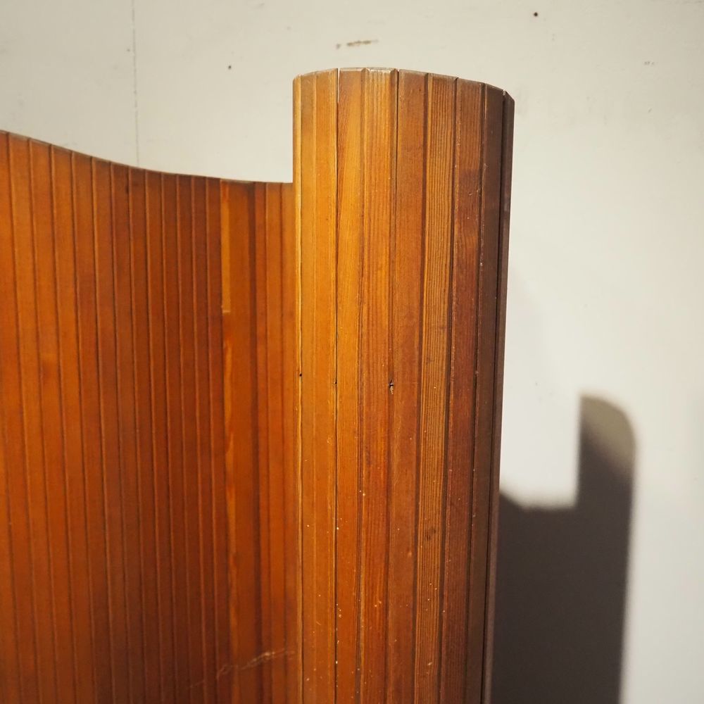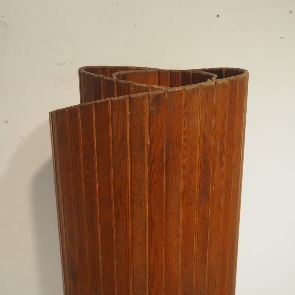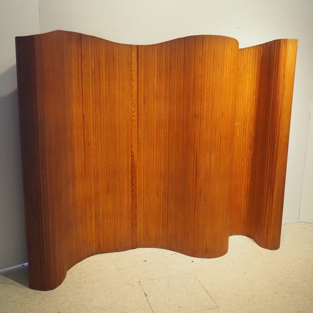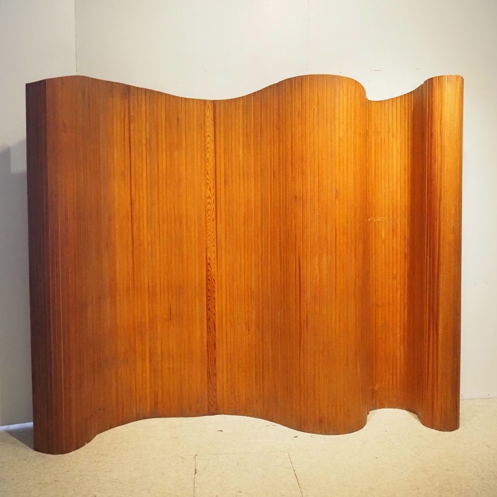 Baumann : Paravent vers 1940, constitué de nombreuses lattes en pitch pin massif, H: 180, L: 320 cm