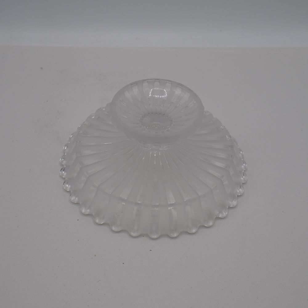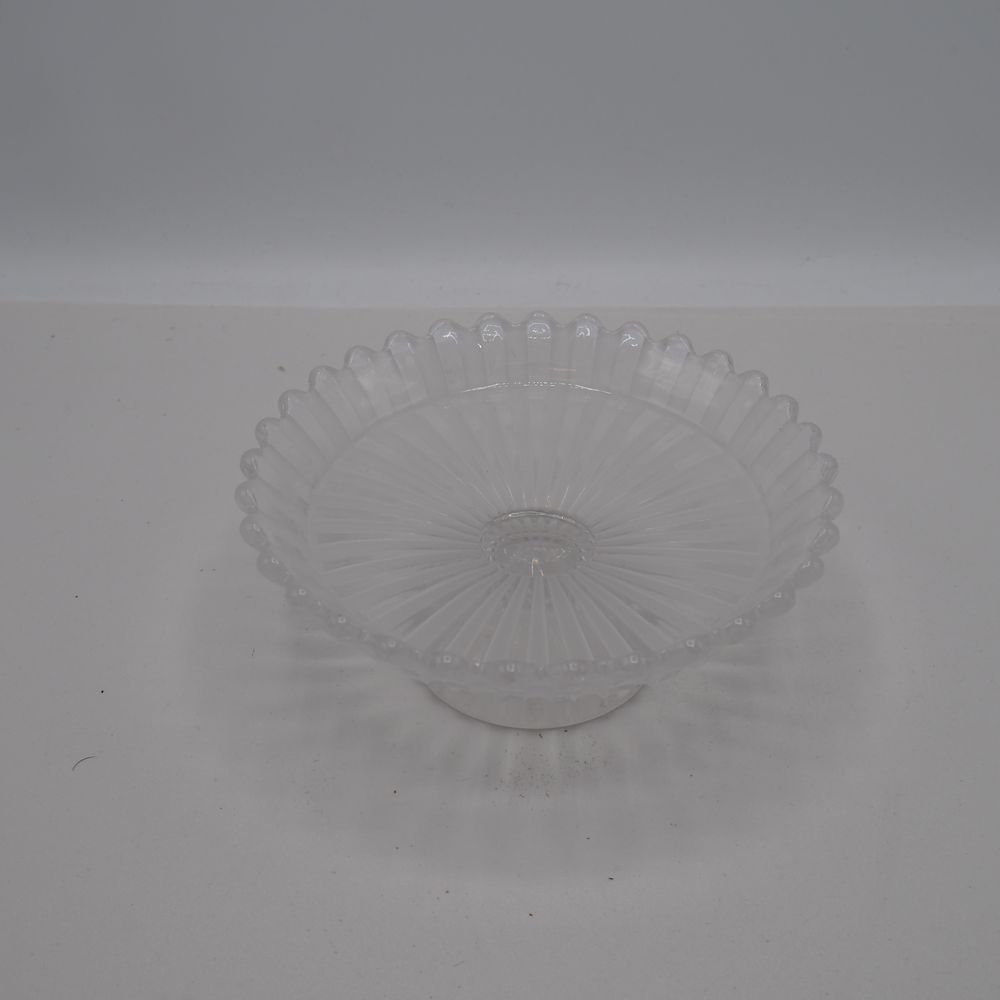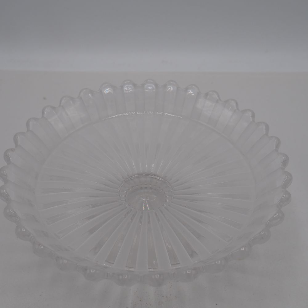 Baccarat : Petite coupe/vide poche sur pied douche à col dentellé, cristal moulé clair et satiné, signé dans la masse Baccarat, H: 6,6, diam: 16,4 cm