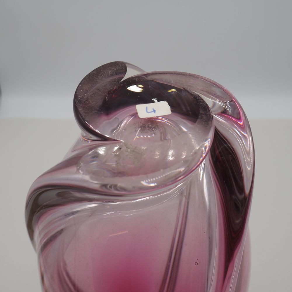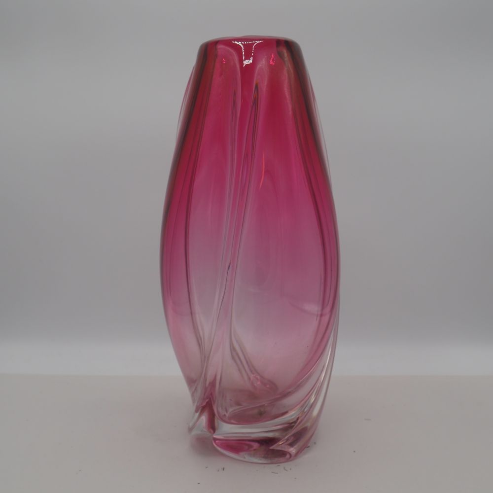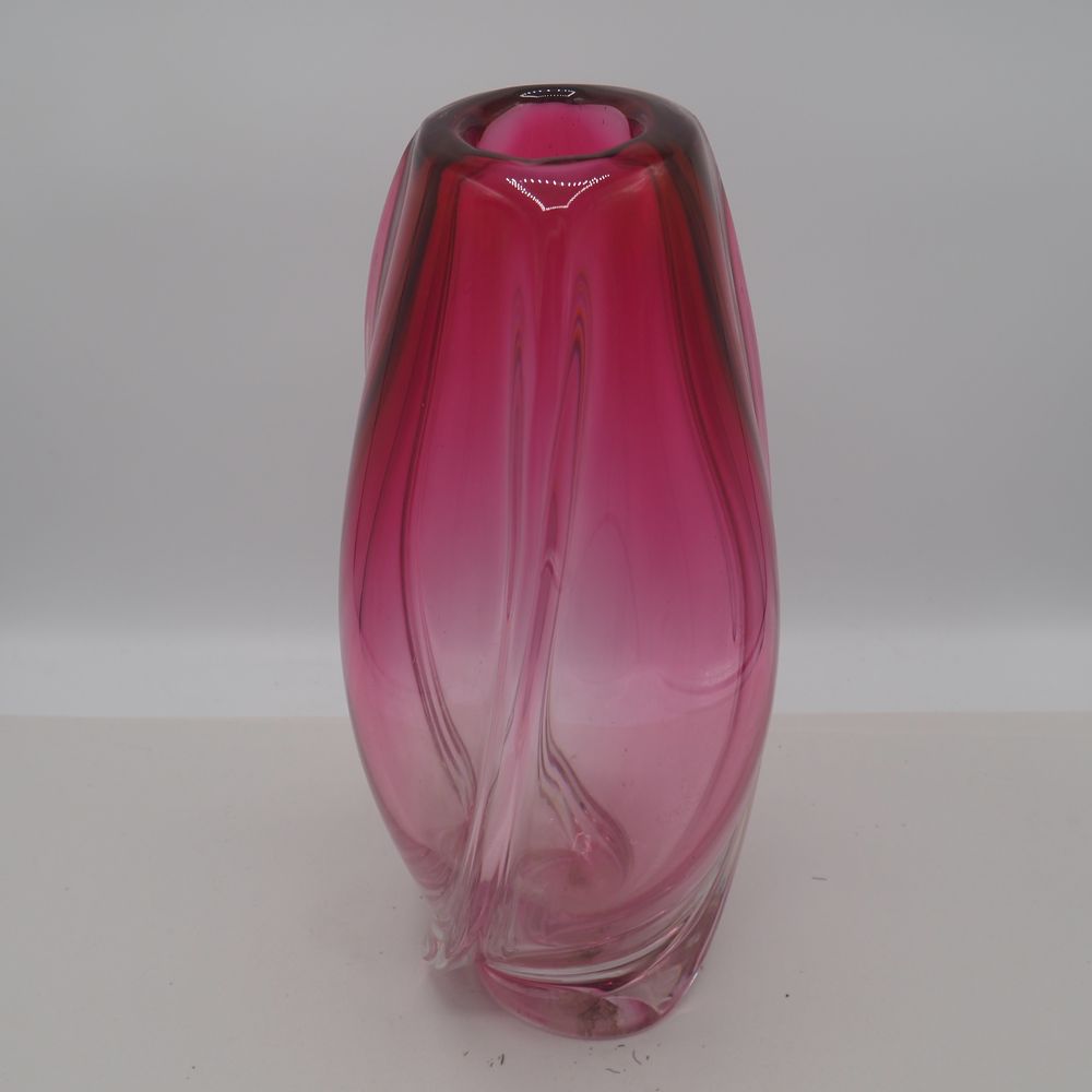 René Delvenne/ Louis Leloup / VSL : Vase vers 1958, cristal coulé teinté rubis de forme torsadée et travaillé à l’outil, H : 37, diam : 16 cm