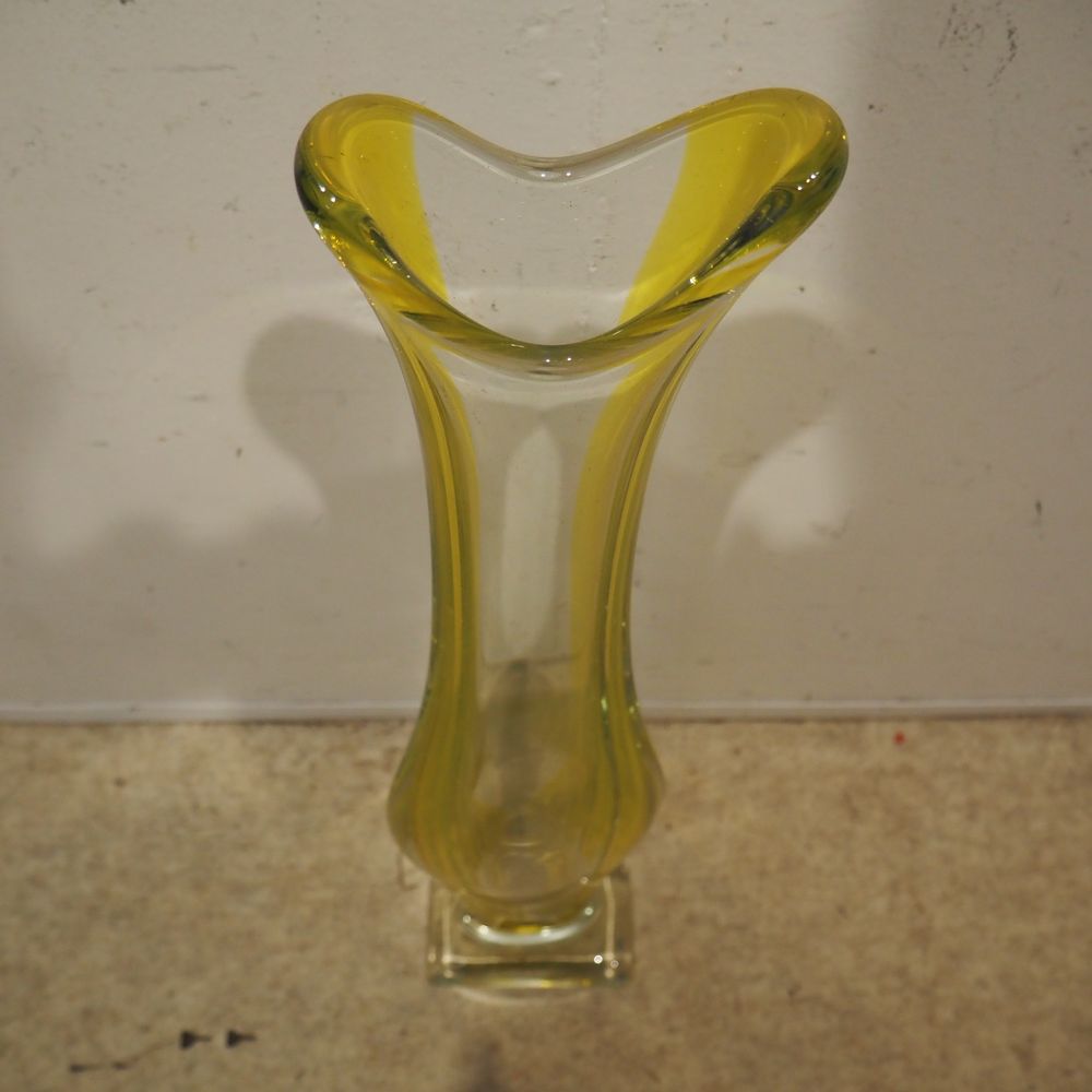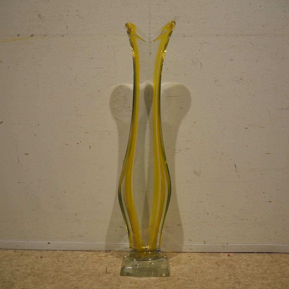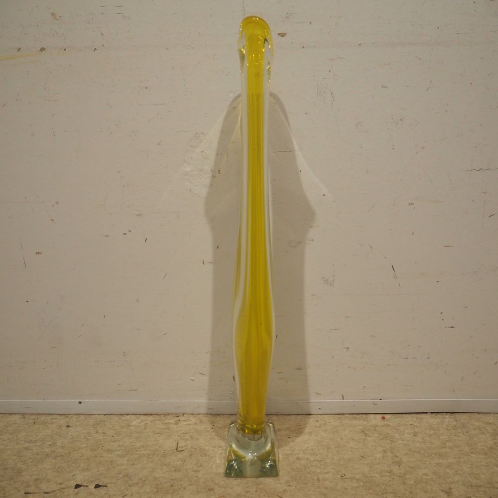René Delvenne / Louis Leloup / Val Saint-Lambert : Grand vase soliflor vers 1958, cristal coulé et partiellement teinté jaune : H : 75,5, L: 15,5, P: 9,5 cm