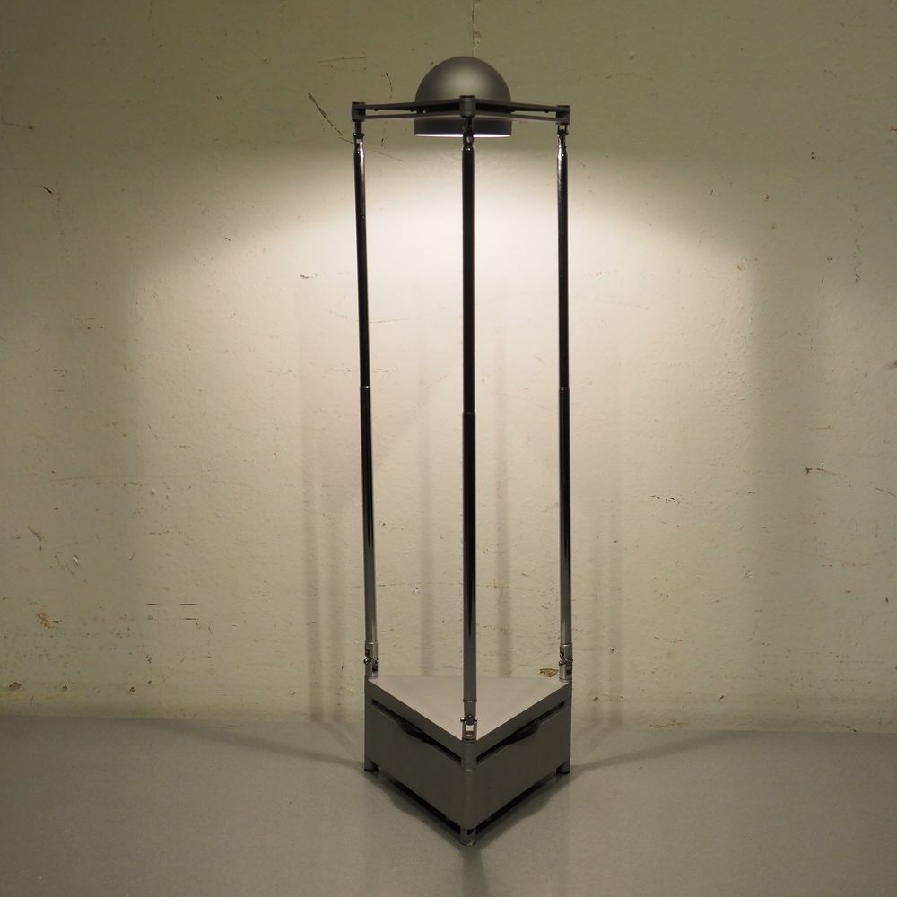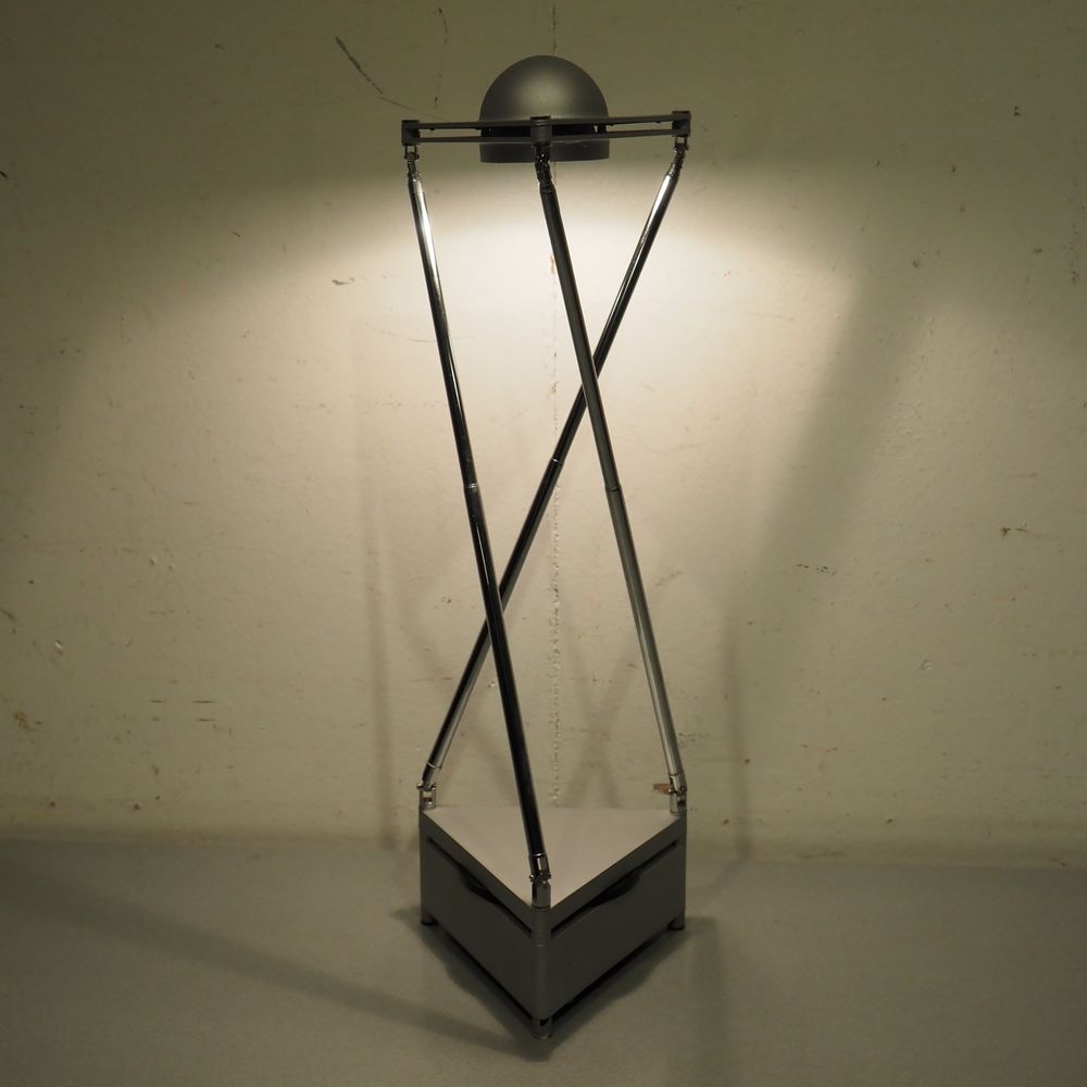 Ferdinand Alexandre Porsche 1935-2012 / Lucitalia : Lampe de bureau halogène vers 1980, modèle Candido, 3 bras télescopiques avec rotules sur une base avec transformateur intégré
