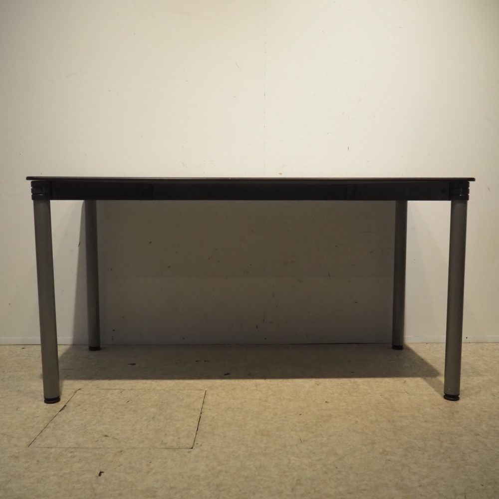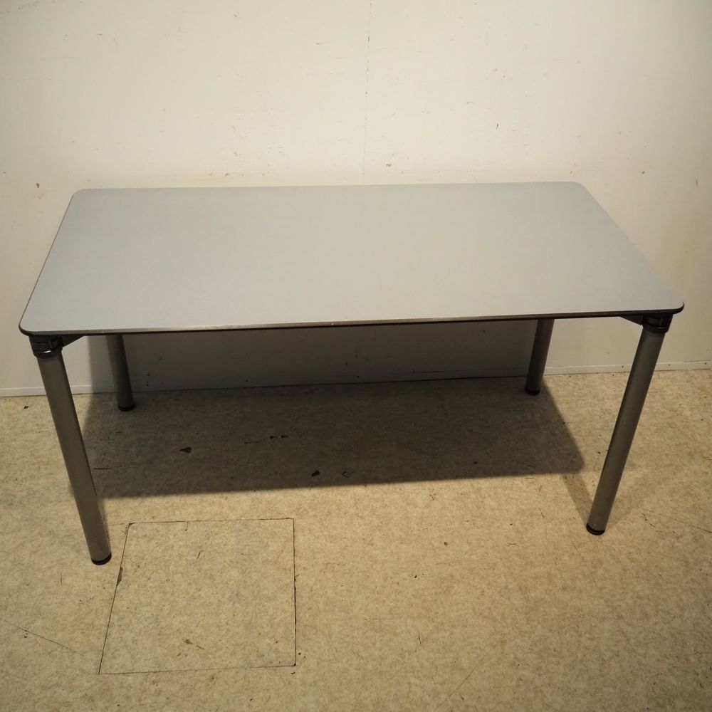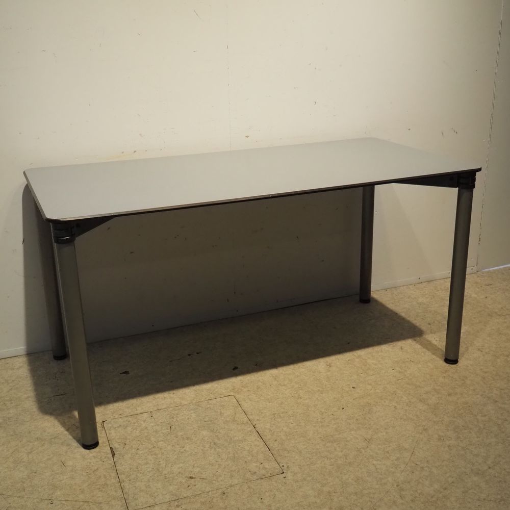 Bulo : Table de bureau, bois stratifié gris clair posé sur 4 pieds tublaire en acier métallisés, H: 72, L: 140, P: 70 cm