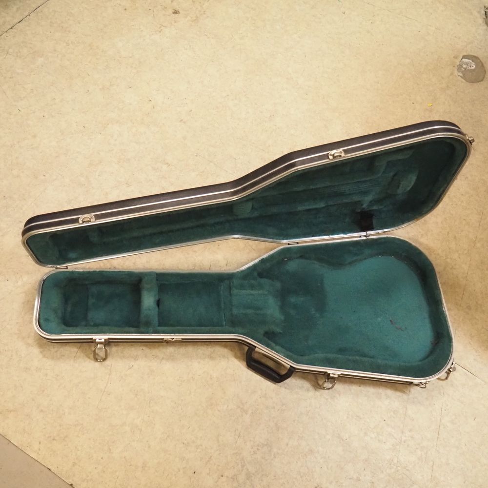 Just in Case : Valise à guitare vers 1970, plastique moulé et intérieur garni de velours vert