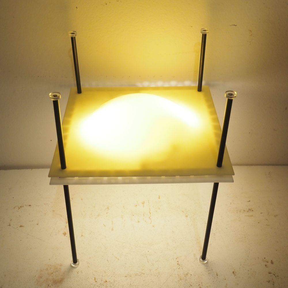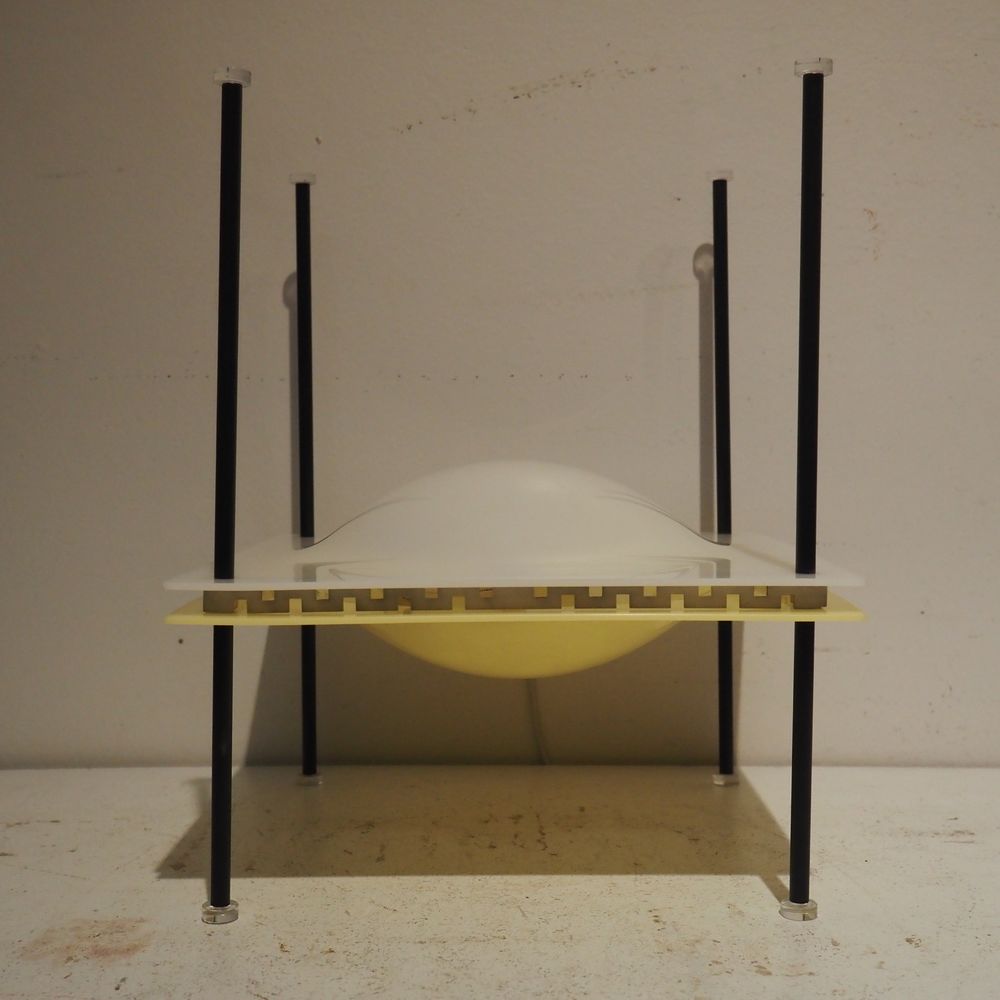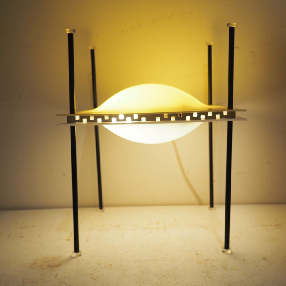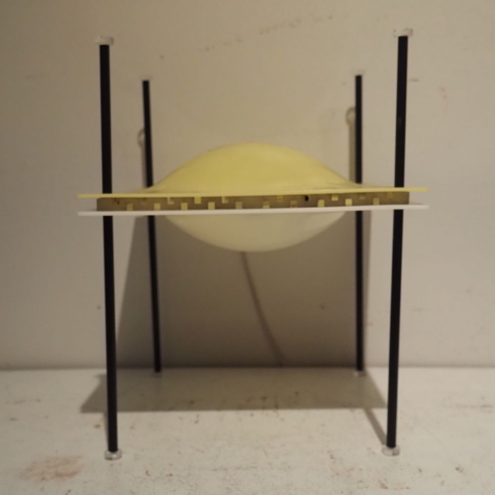 Ettore Sottsass 1919-1974 : Lampe d’ambiance, modèle Palafitta 12639, année 1957, n°12639, dim: 35 x 28 x 28 cm