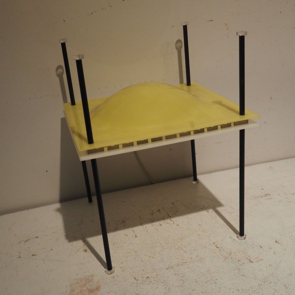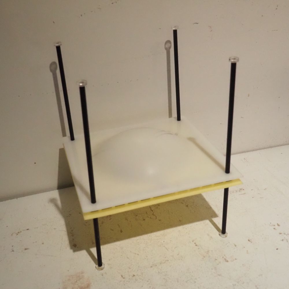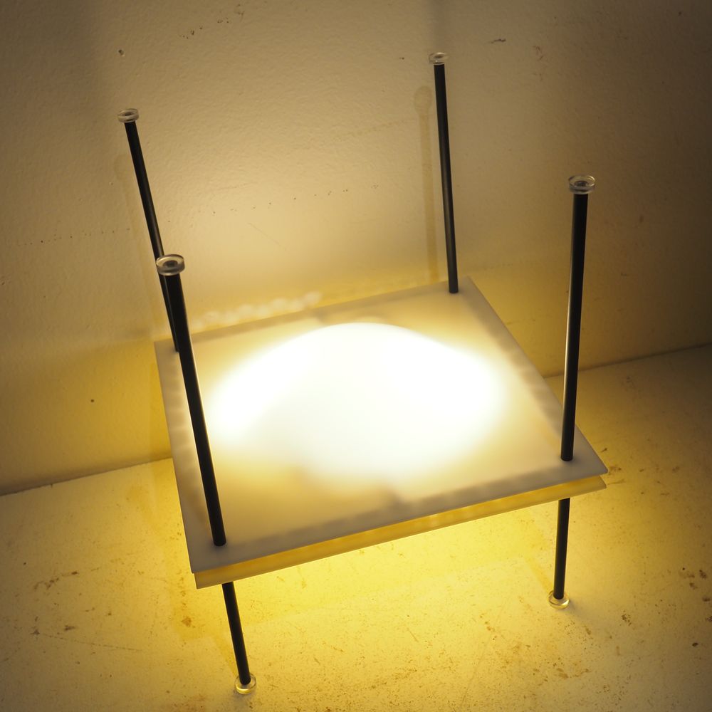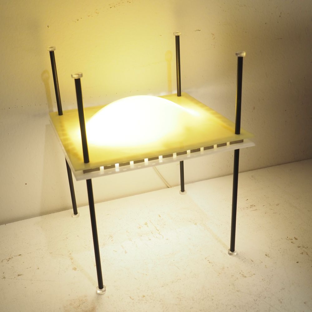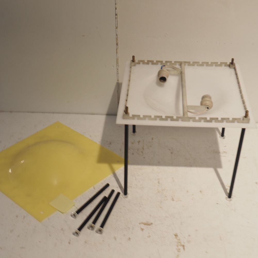 Ettore Sottsass 1919-1974 : Lampe d’ambiance, modèle Palafitta 12639, année 1957, n°12639, dim: 35 x 28 x 28 cm