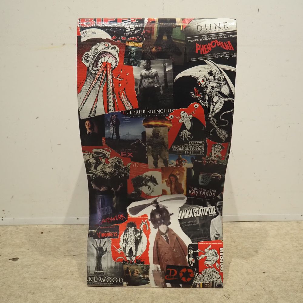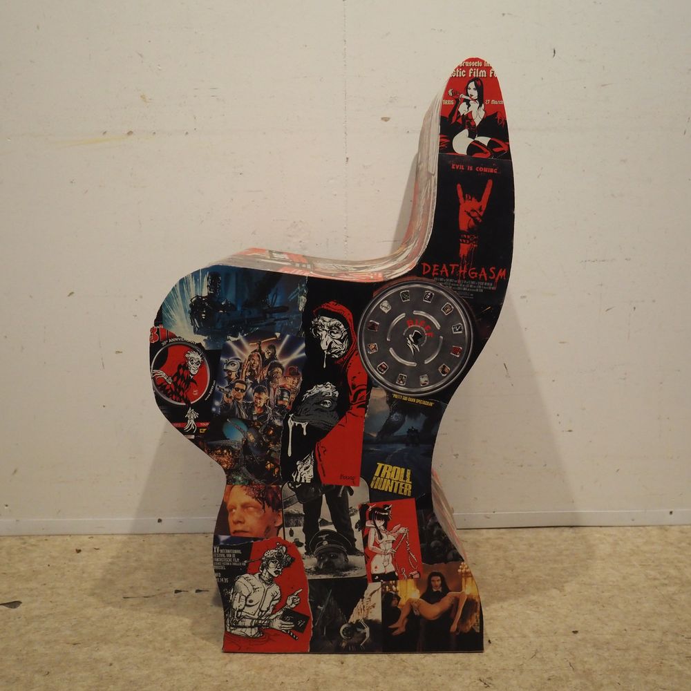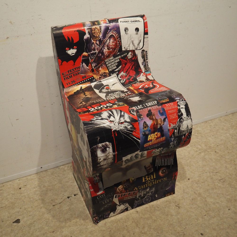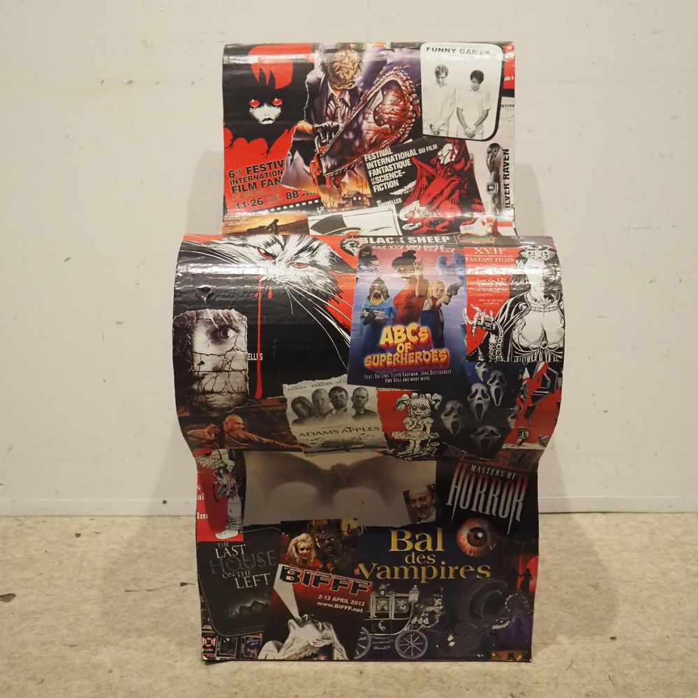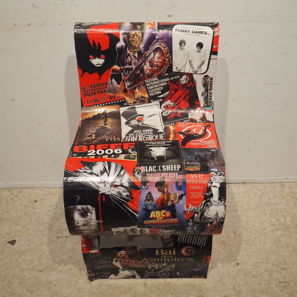 Chaise vers 2000 : Carton découpé et collage avec feuilles de magazines, H: 78, P: 46, L: 40,6 cm