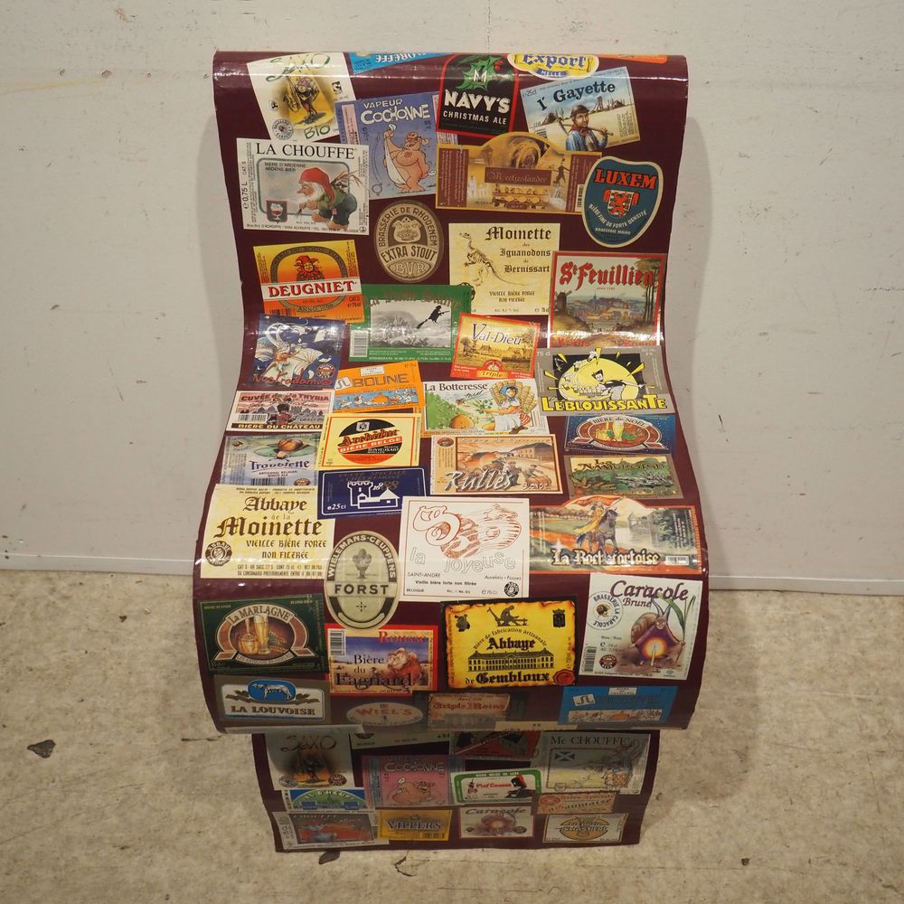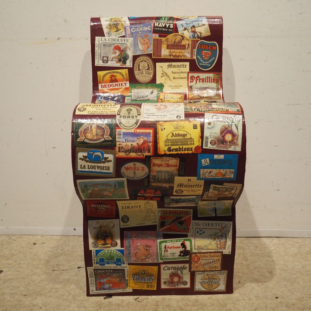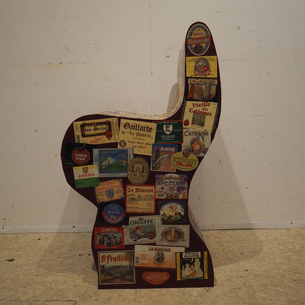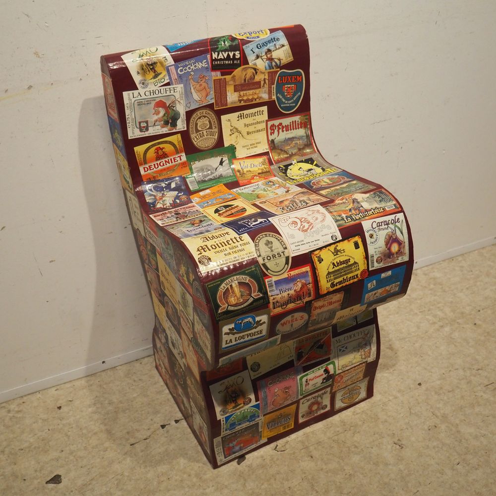 Chaise vers 2000 : Carton découpé et collage avec feuilles de magazines, H: 78, P: 46, L: 40,6 cm