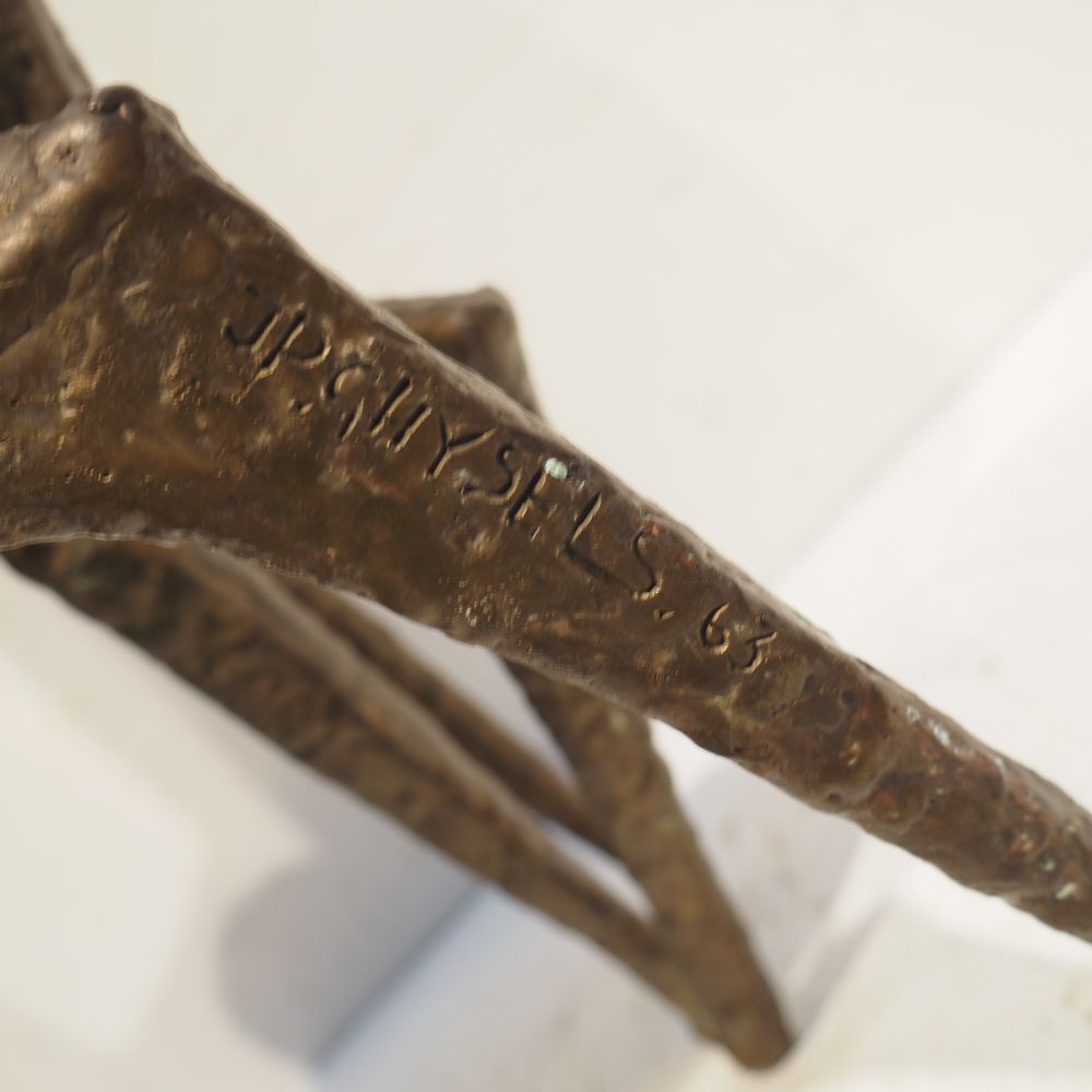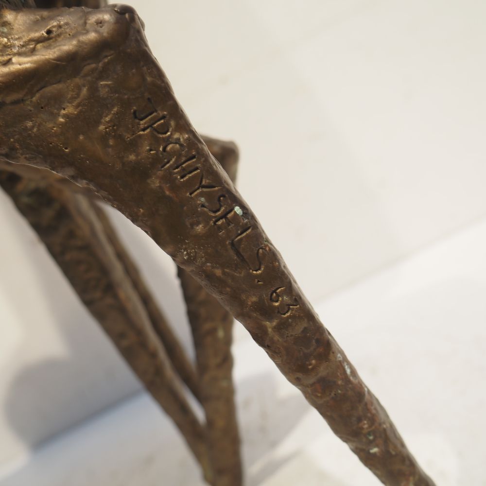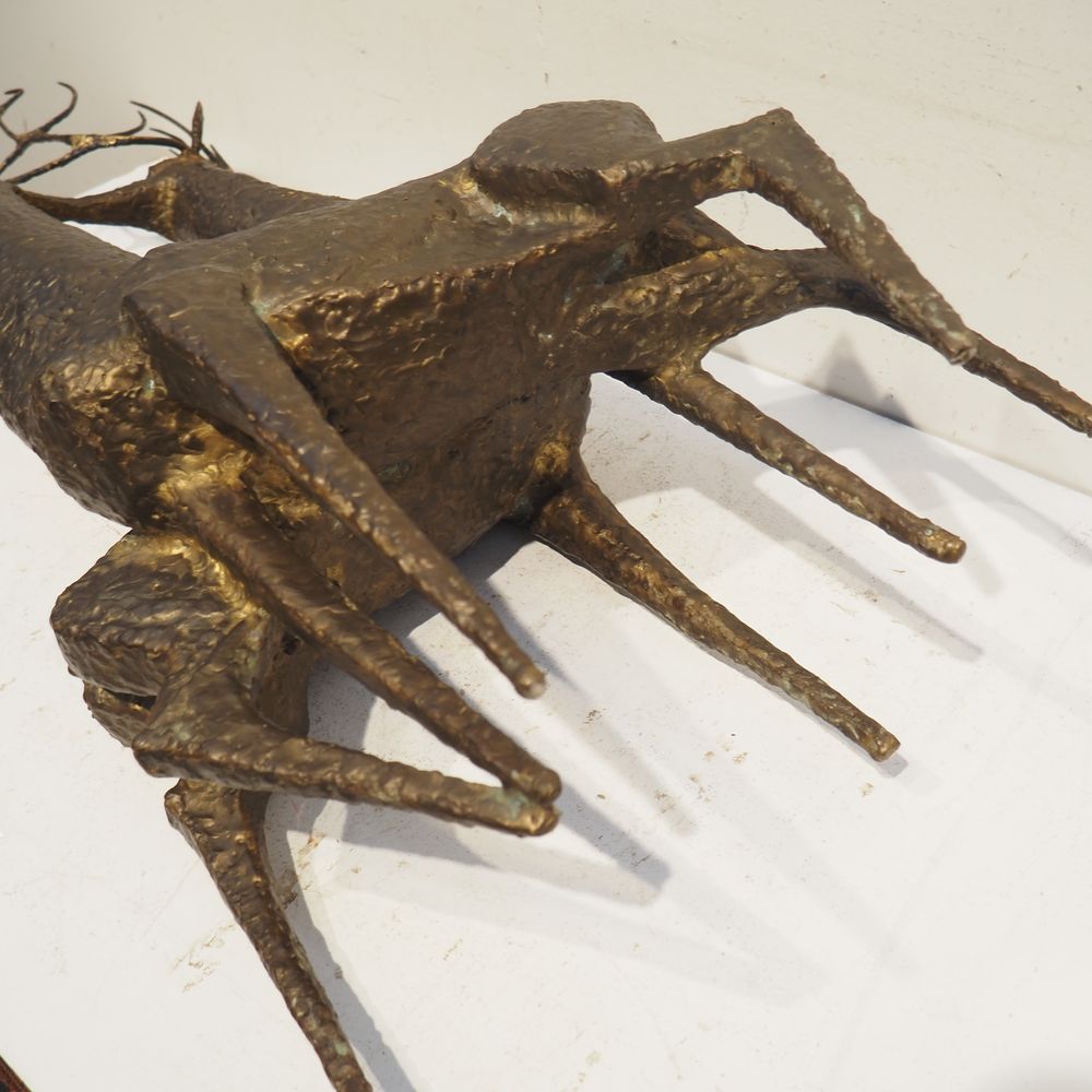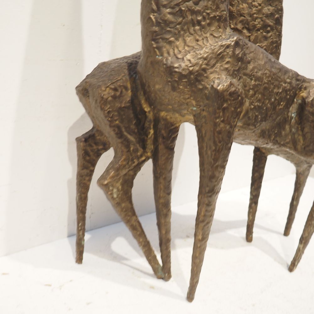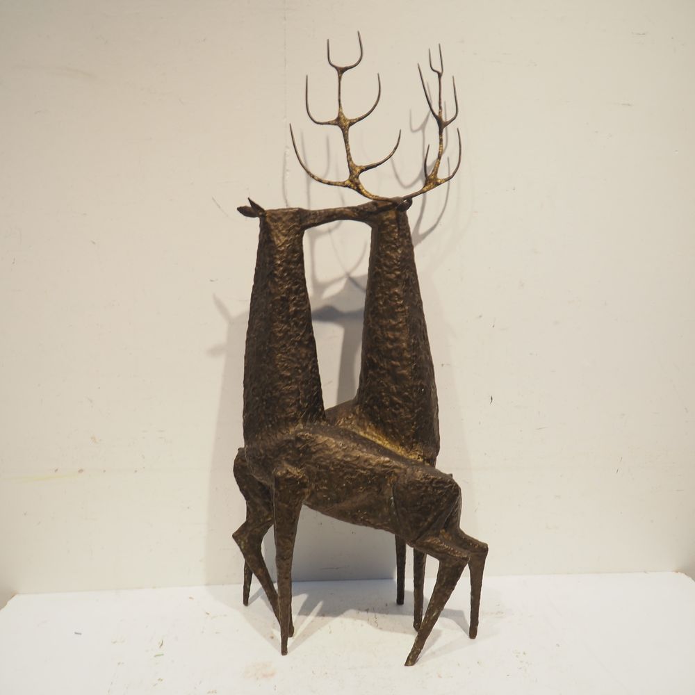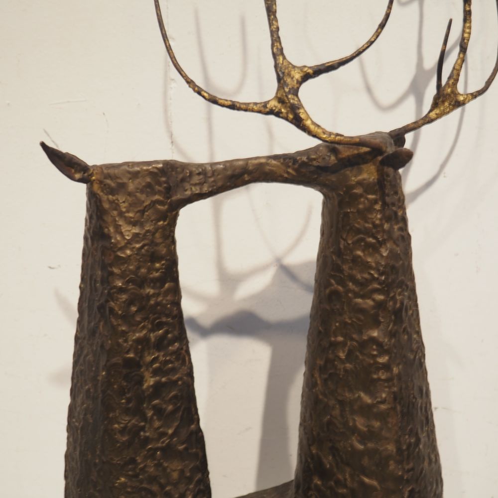 Jean-Pierre Ghysels 1932 – 2024 élève de Ossip Zadkin : Sculpture zoomorphique, pièce unique, bronze patiné, figurant un couple de cervidés, signée jambe arrière droite, datée 1963, H: 94, L: 40, P: 24 cm (+4% de droit de suites)