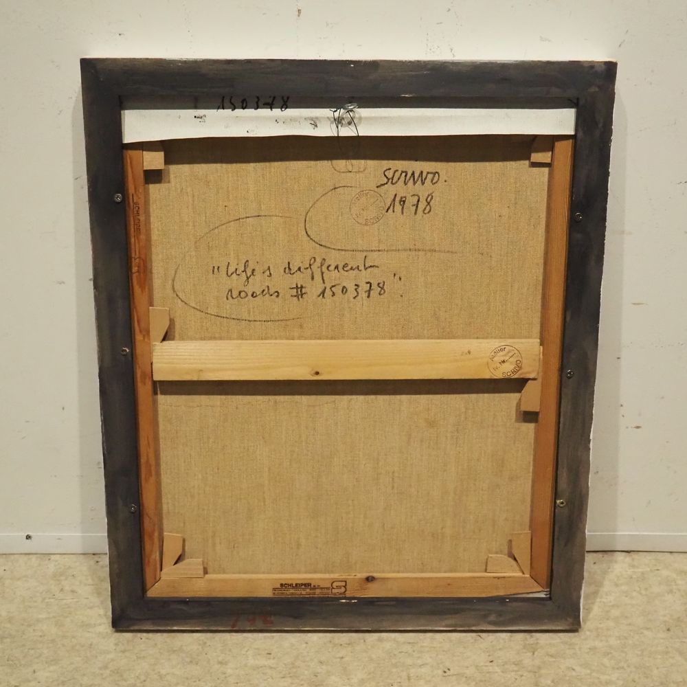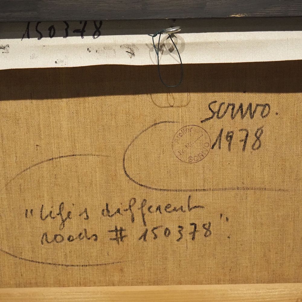 Scrivo 1942 : Acrylique sur toile, composition abstraite, « life’s different roads », numéro 150378, signée en bas et contre signée, datée 1978, dim: 60 x 50 cm