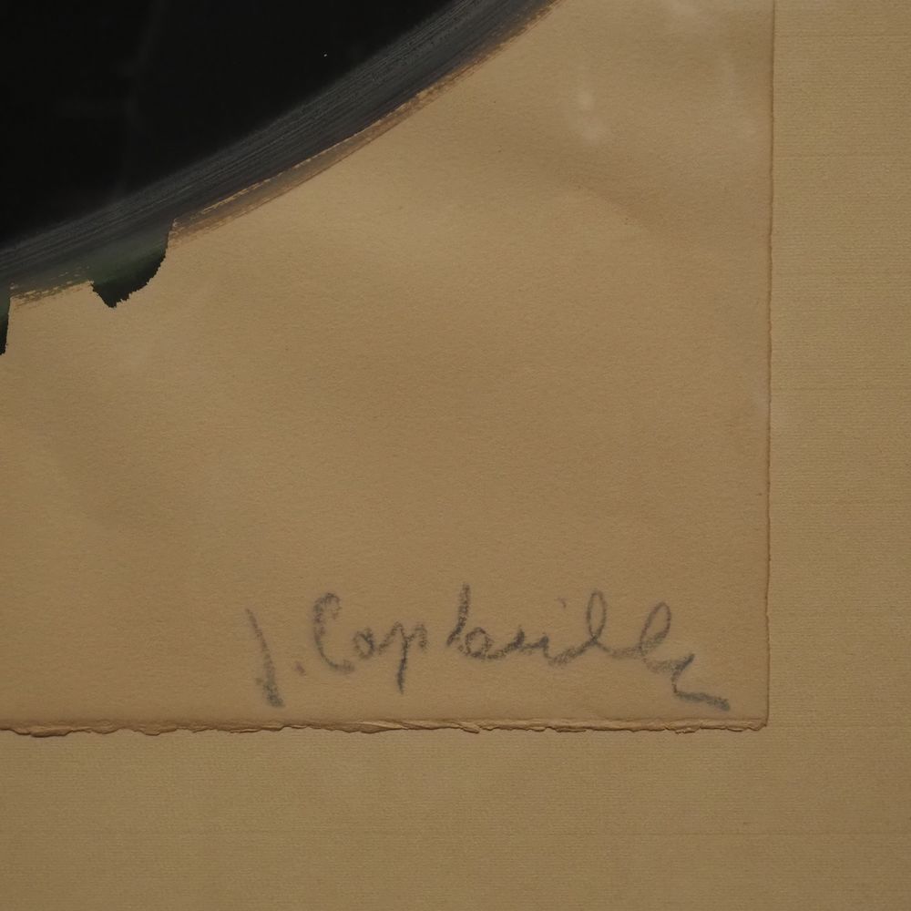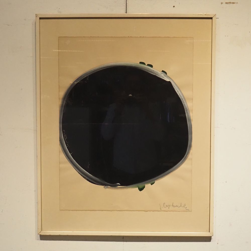 Jean Capdeville 1917 – 2011 : Gouache vers 1960, soleil noir, signée au crayon en bas à droite, encadrée sous verre, dim: 65,5 x 50 cm