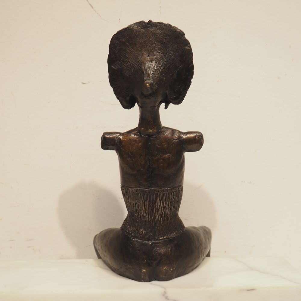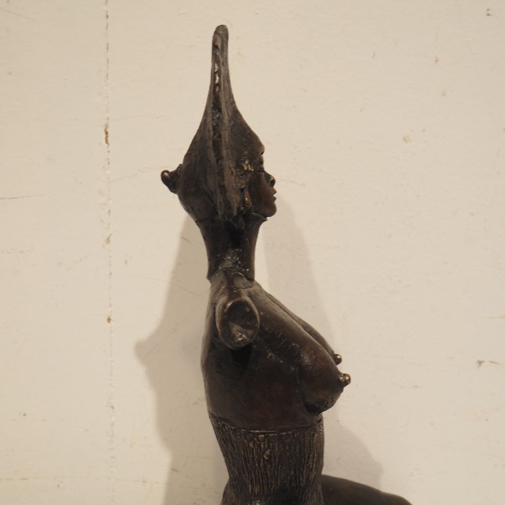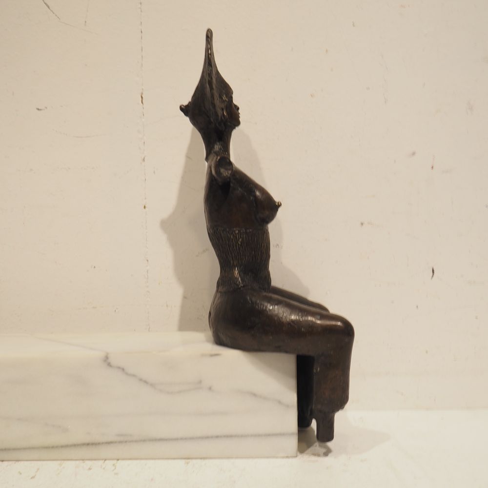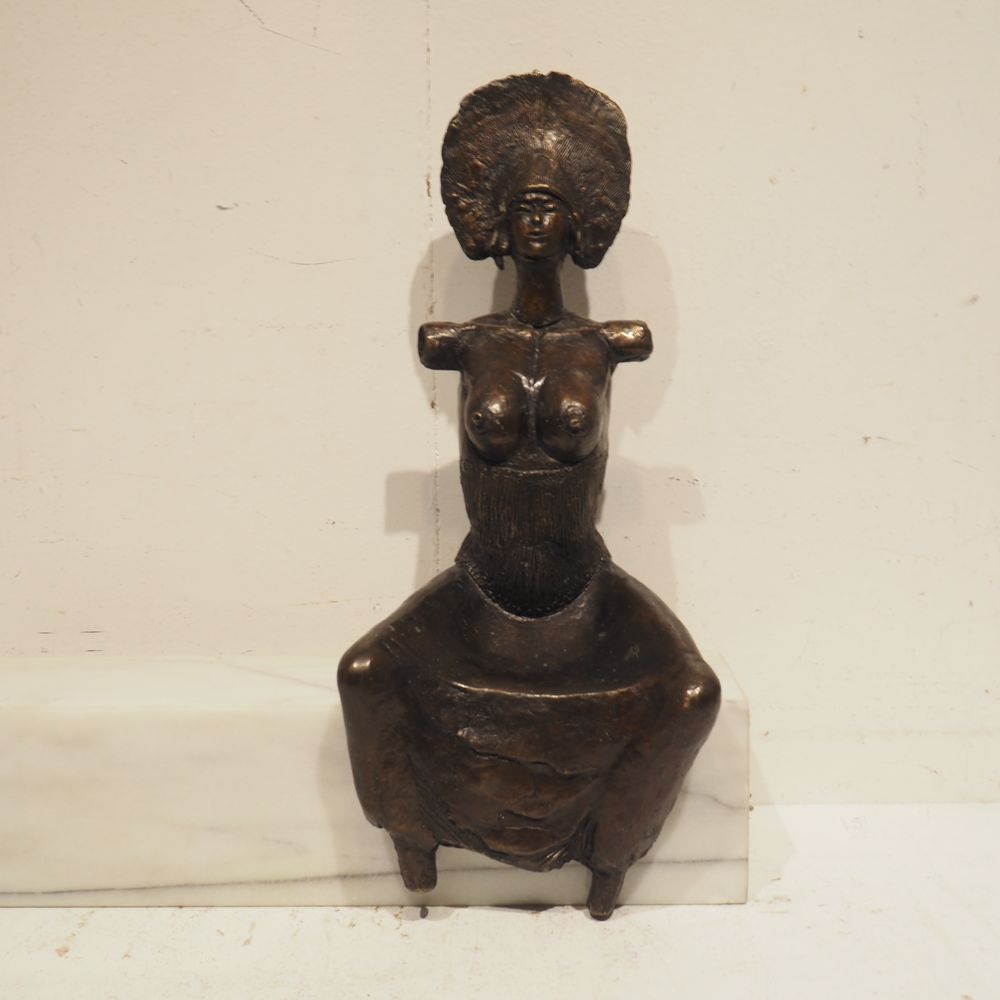 Jef Van Tuerenhout 1926-2006 : Sculpture, épreuve originale, bronze à patine foncée, « Reine assise posée sur un bloc », signée à droite et numérotée 8/8, H sans socle : 87 cm