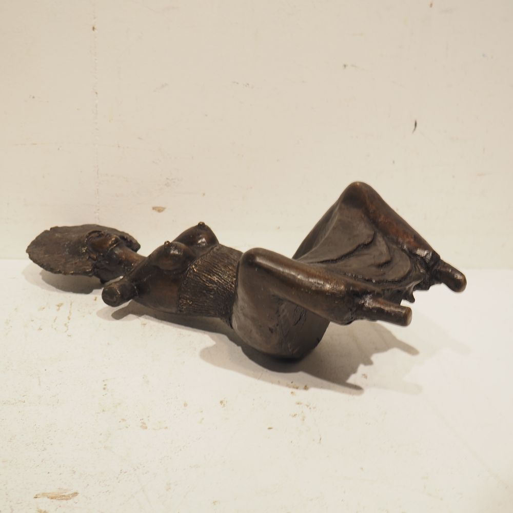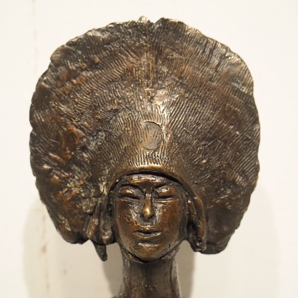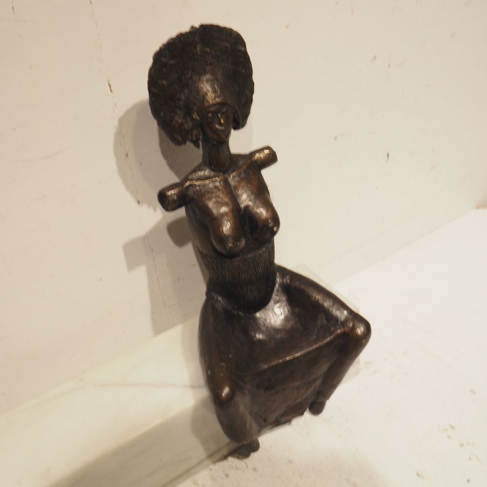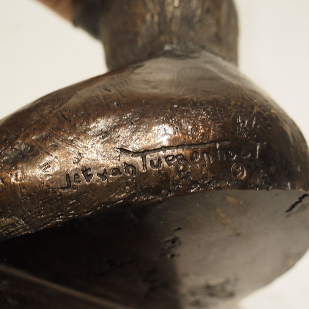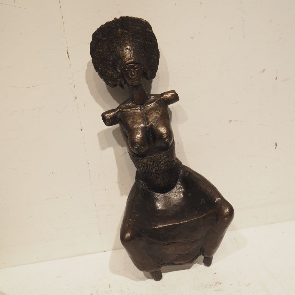 Jef Van Tuerenhout 1926-2006 : Sculpture, épreuve originale, bronze à patine foncée, « Reine assise posée sur un bloc », signée à droite et numérotée 8/8, H sans socle : 87 cm