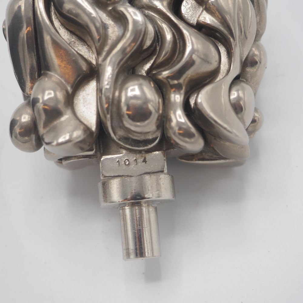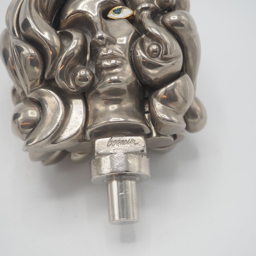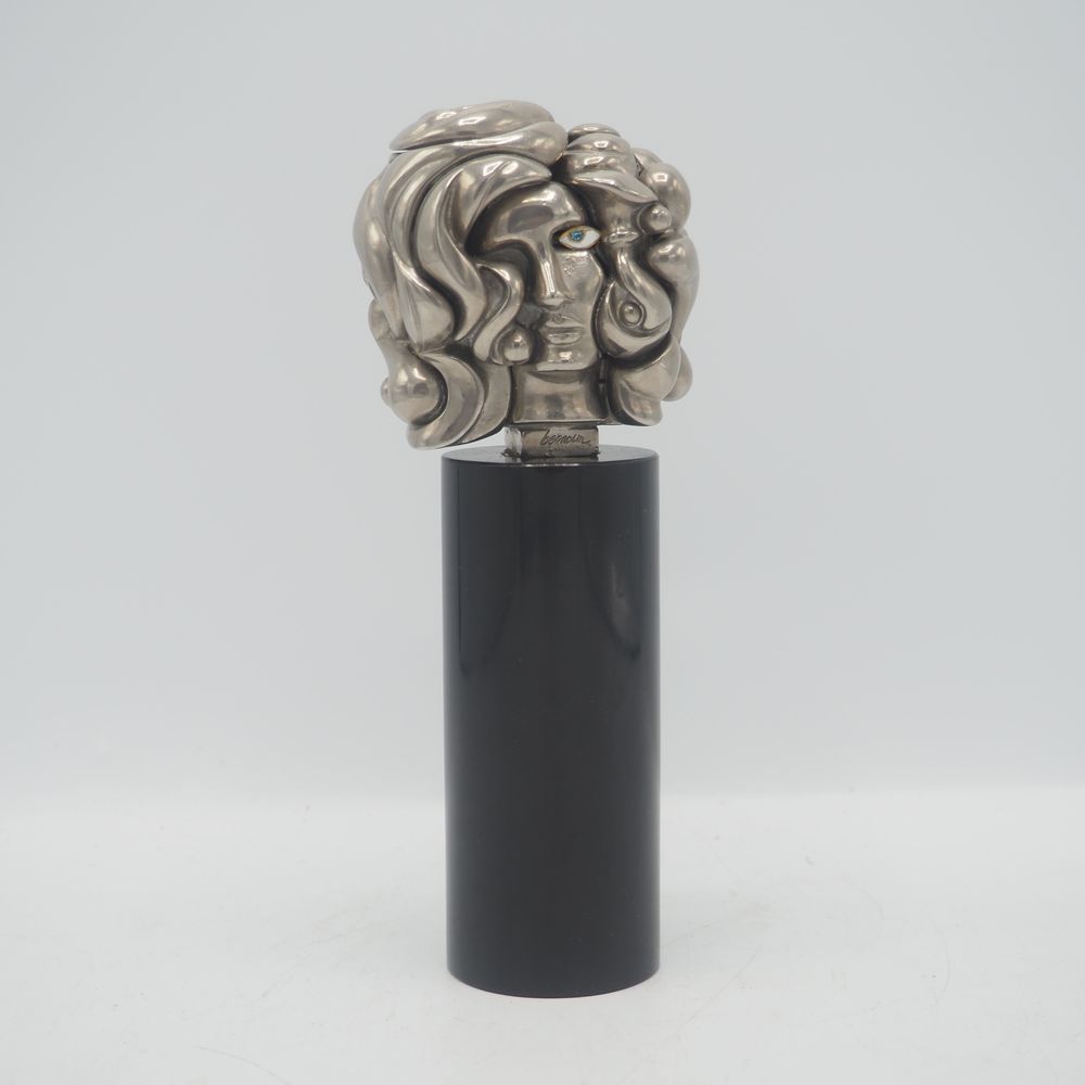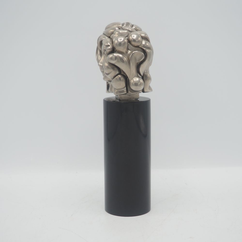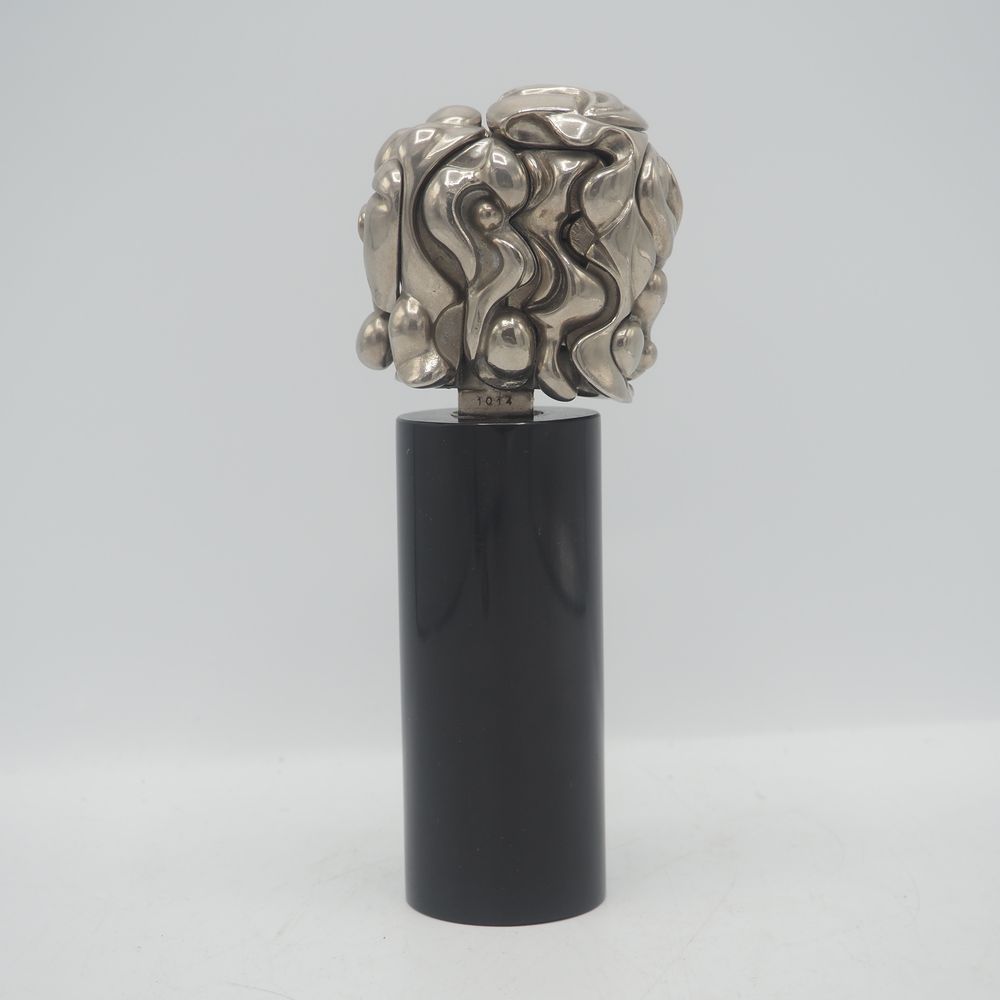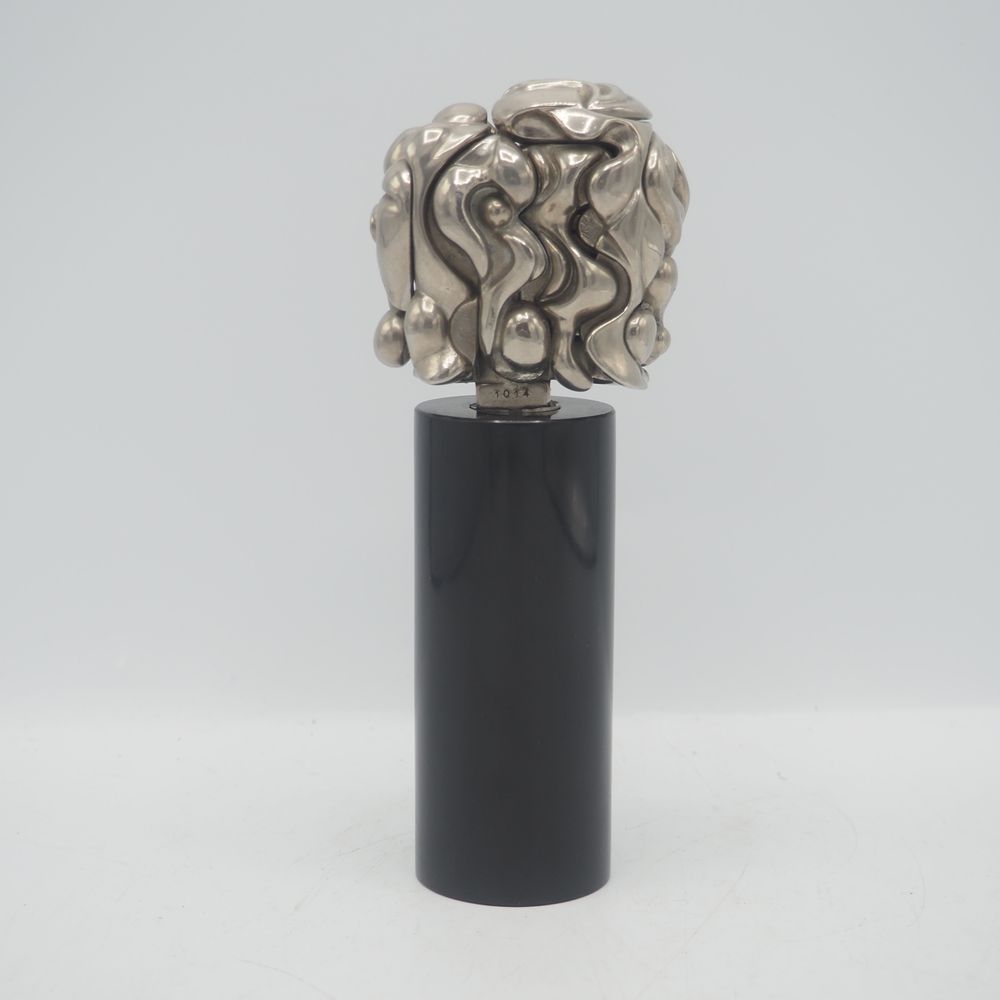 Miguel Berrocal Ortiz (Malaga 1933-2006) : Sculpture, titrée « portrait de Michèle », année 1969, maillechort nickelé, composée de 17 éléments démontables, sur socle cylindrique en marbre de mazzi , exemplaire signé et numéroté 1012 sur 9500, H: 18,5 cm