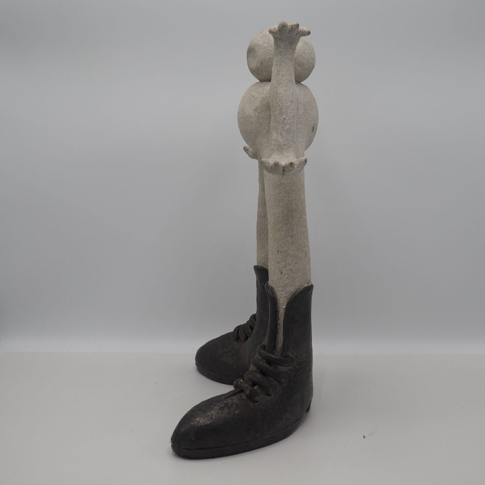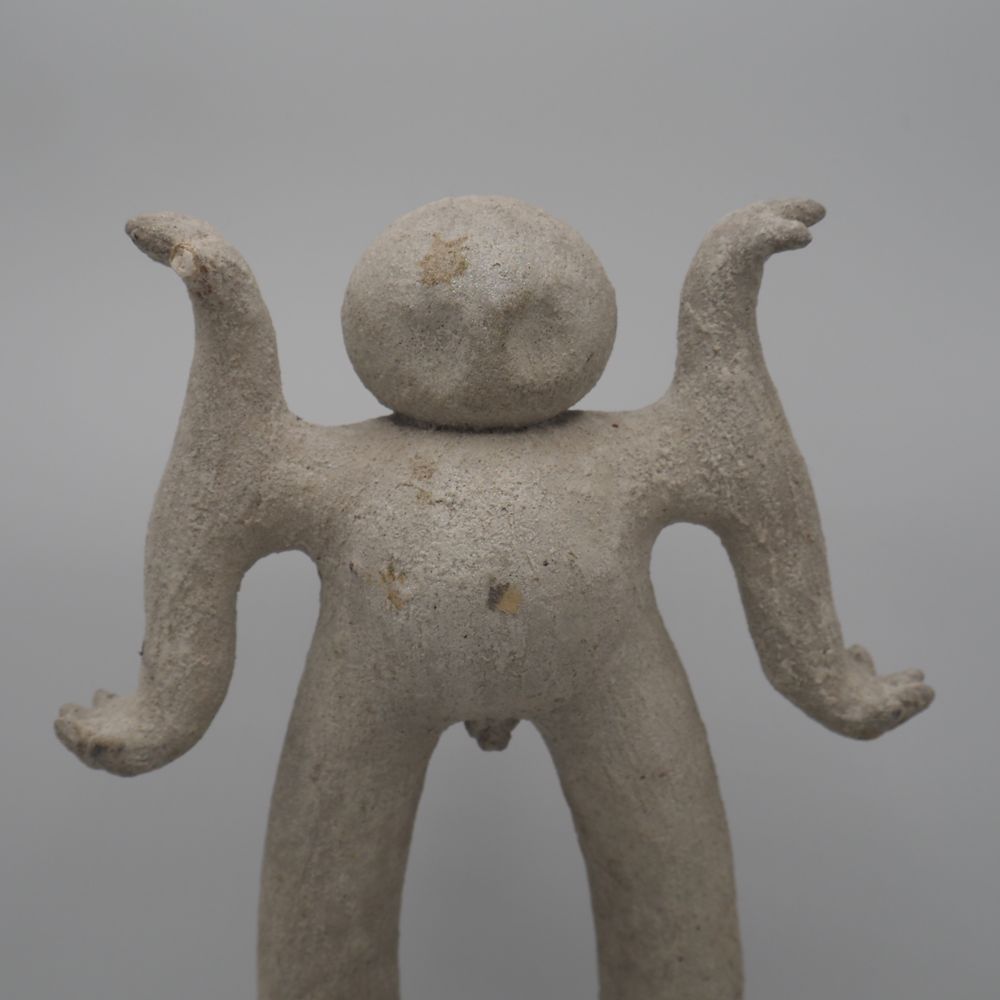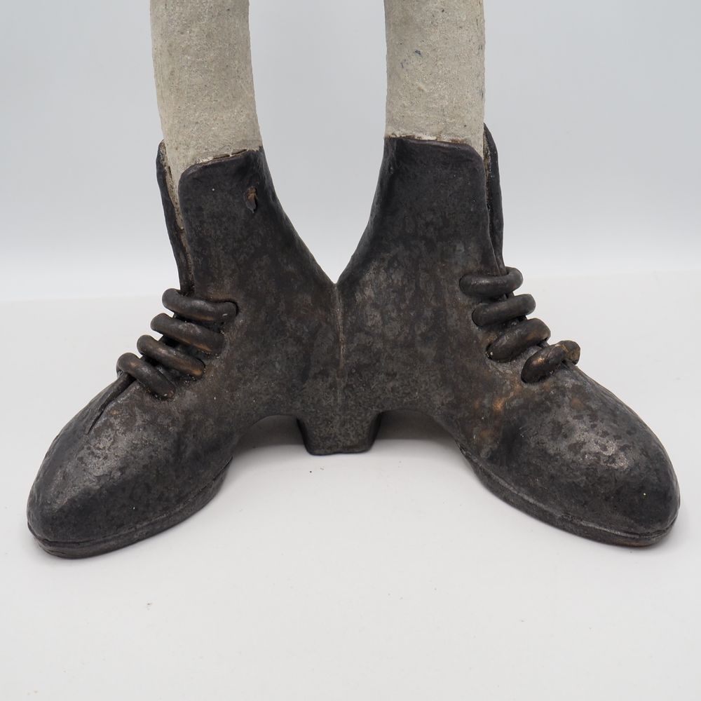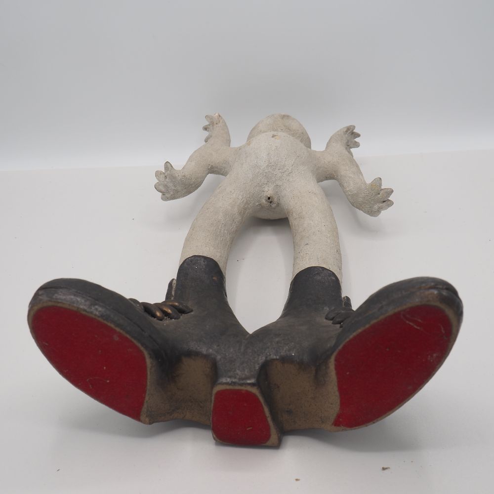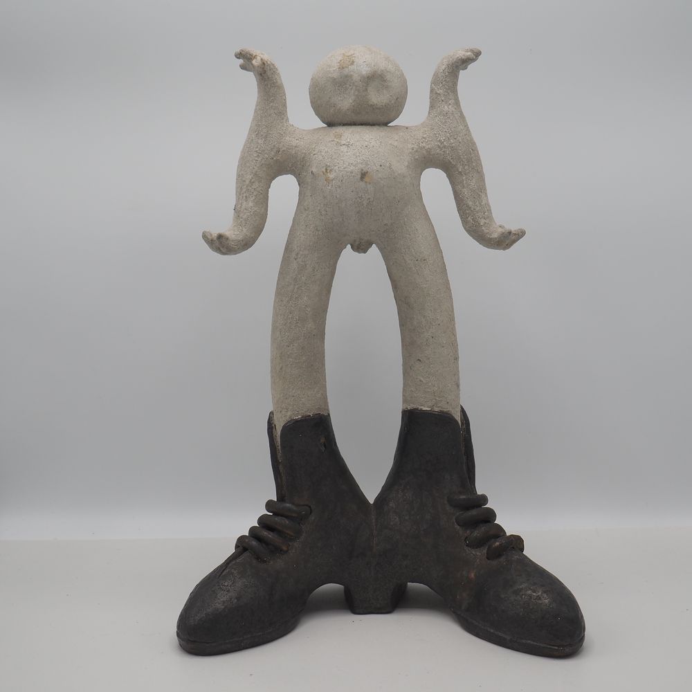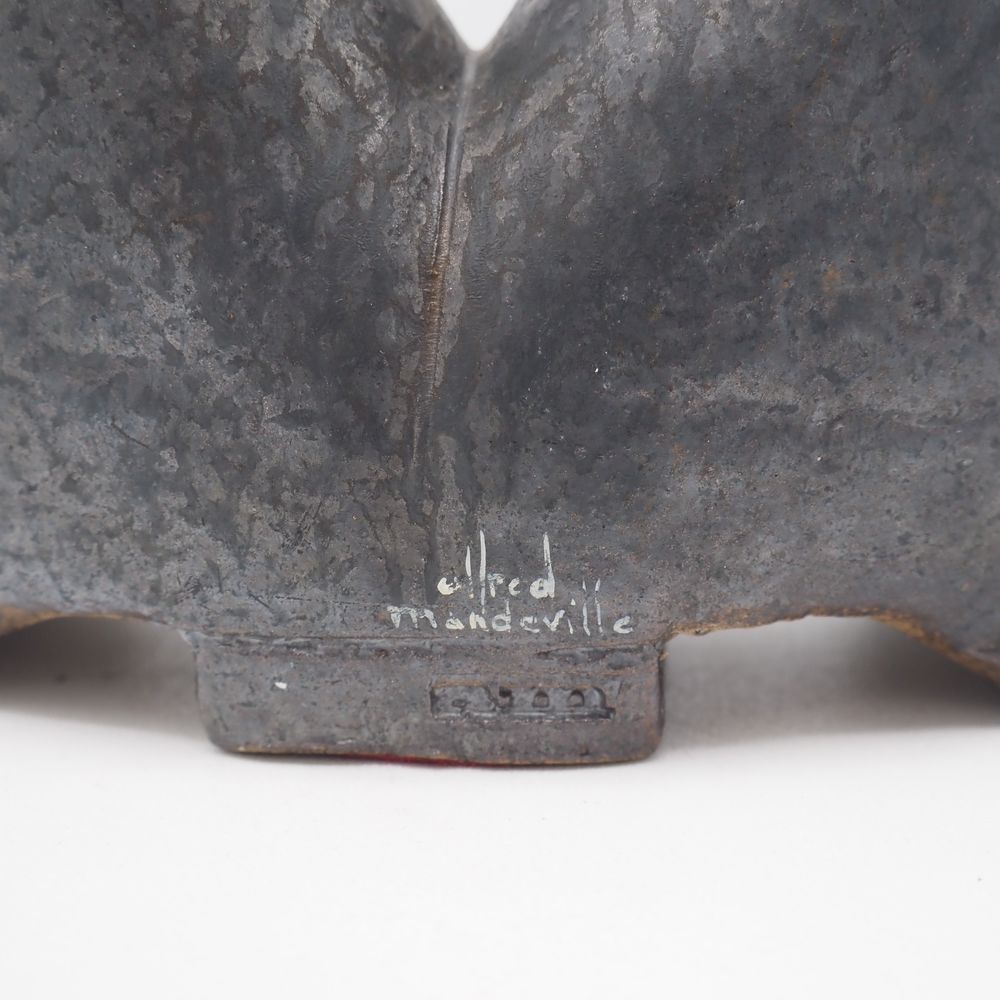 Alfred Mandeville : Sculpture terre cuite figurant un personnage, (2 infimes éclats) H: 38, L: 26, P: 13 cm