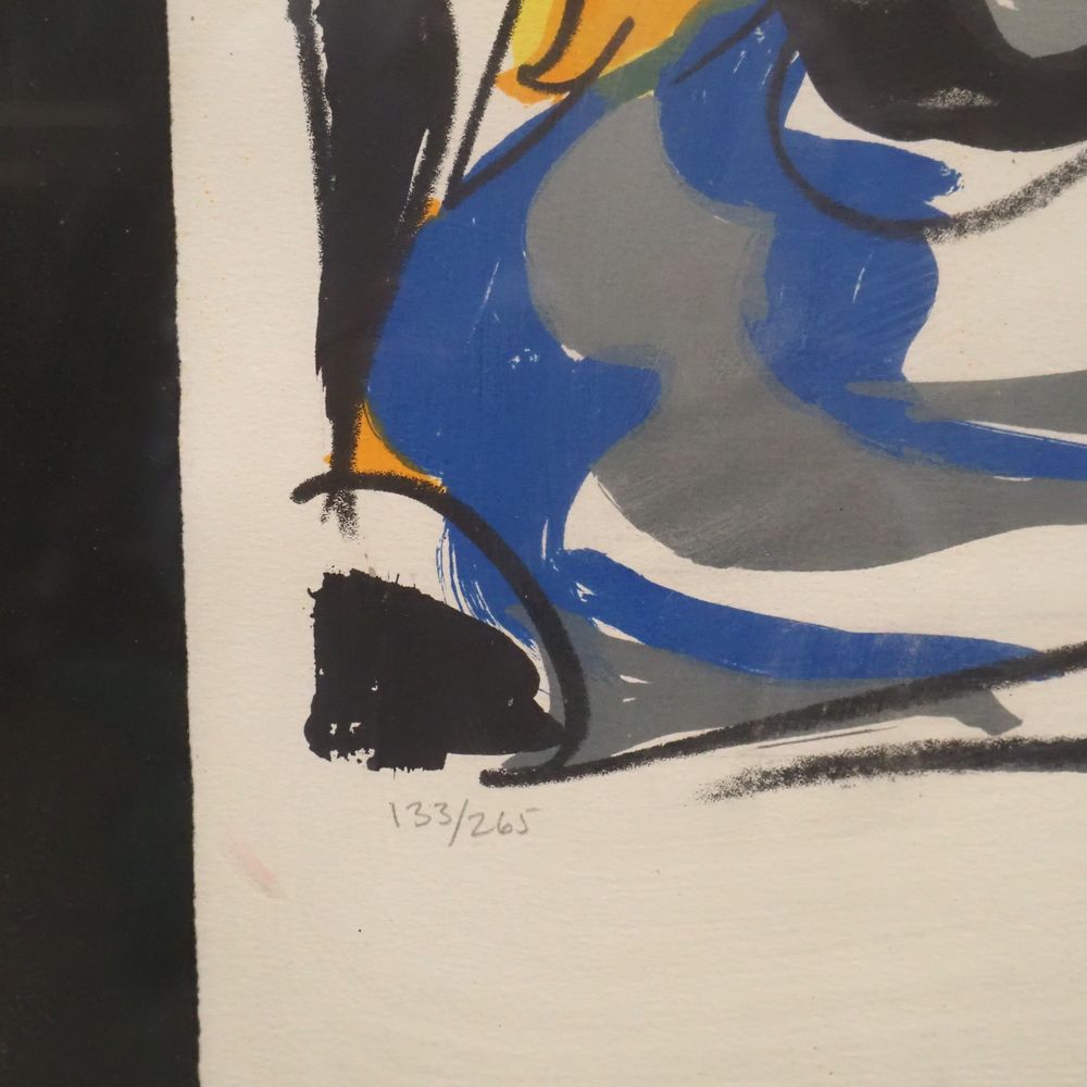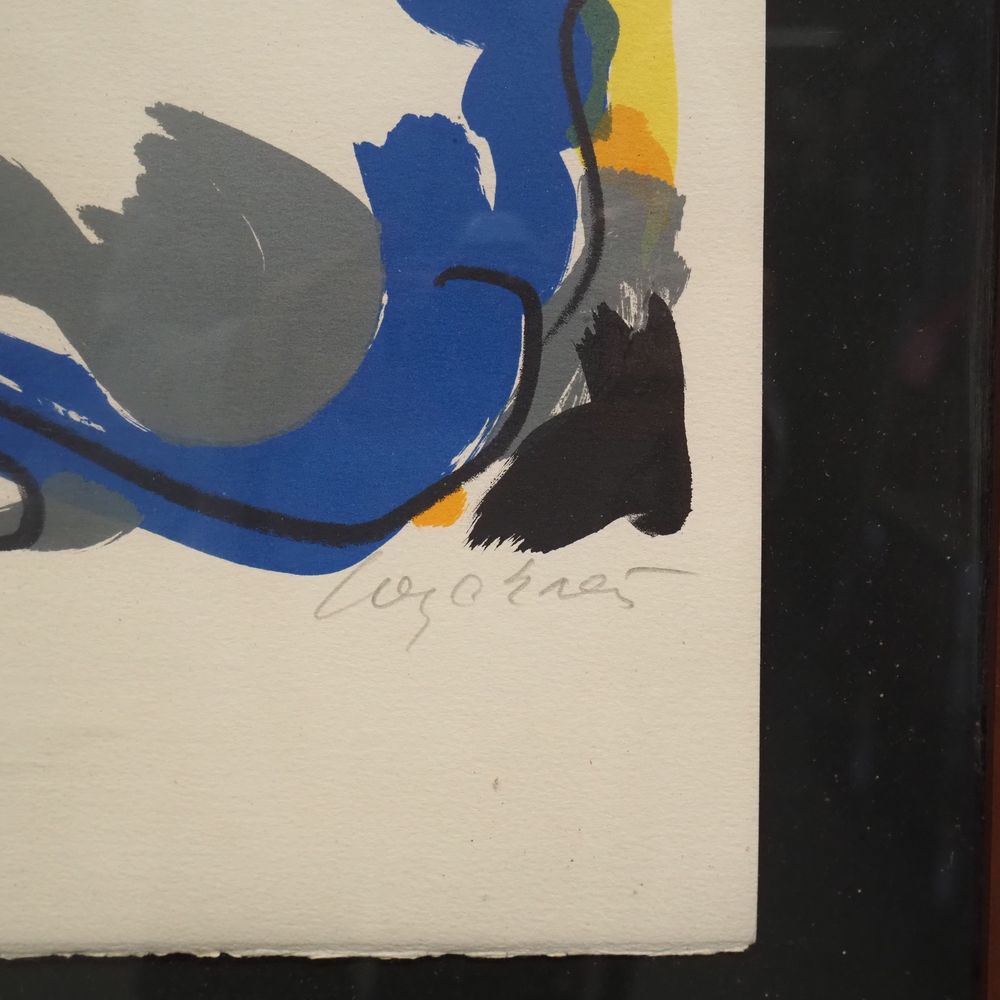 Maurice Wyckaert 1923-1996 : Lithographie couleur, composition abstraite, signée au crayon en bas à droite et numérotée 133/265, encadrée sous verre, dim: 65 x 48 cm