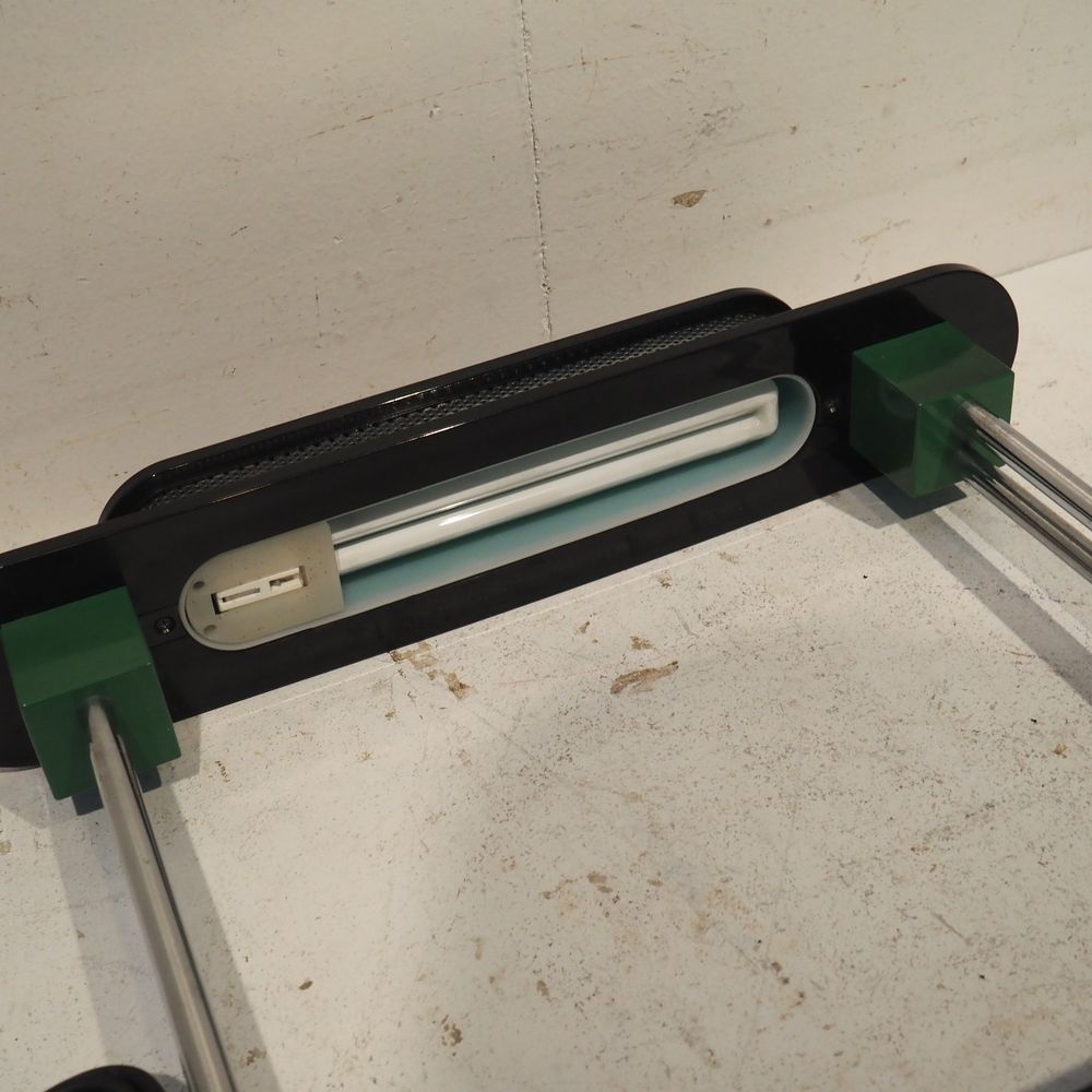 Ettore Sottsass 1917-2007 / Artemide : Lampe de bureau, modèle Pausania, plastique et métal chromé (restaurée)