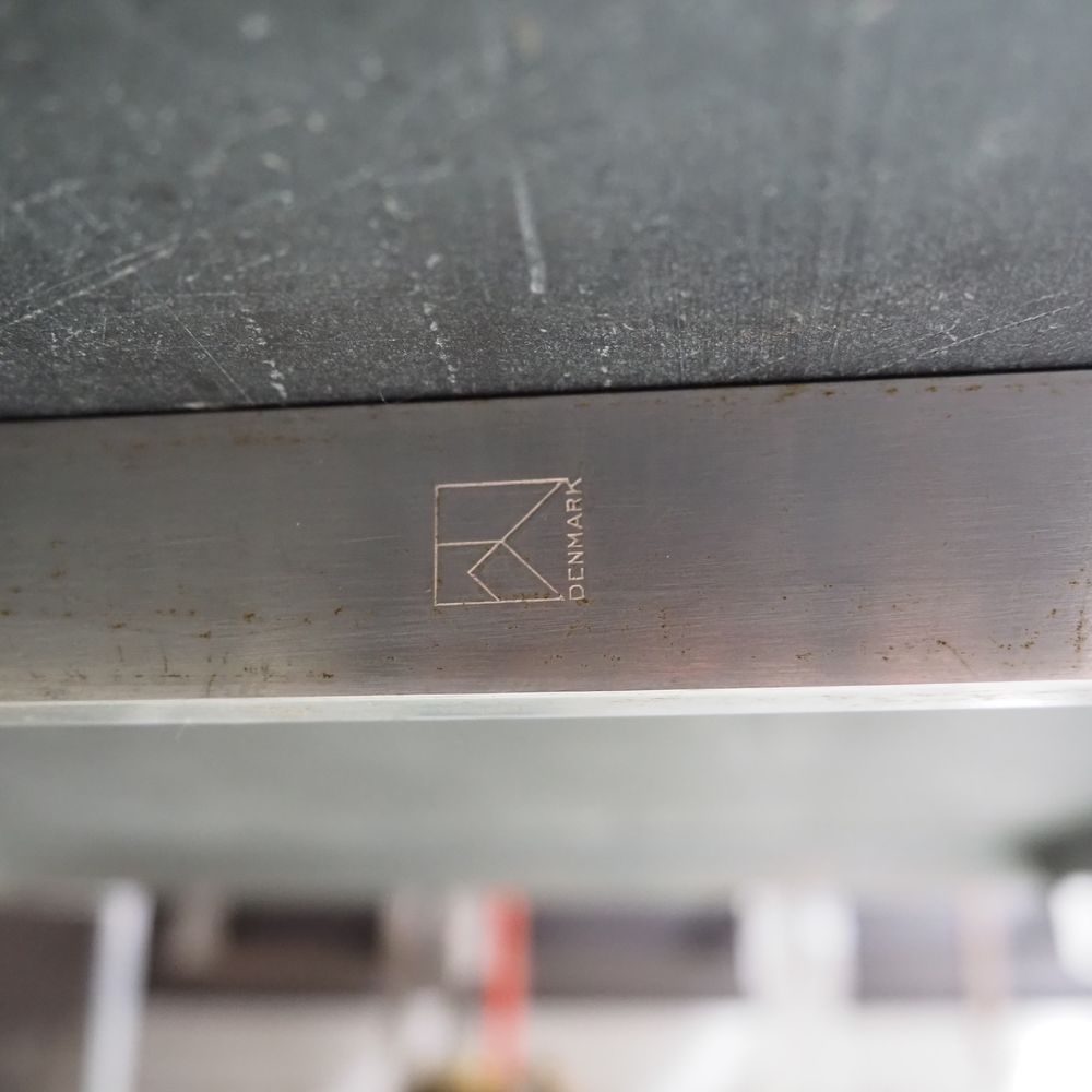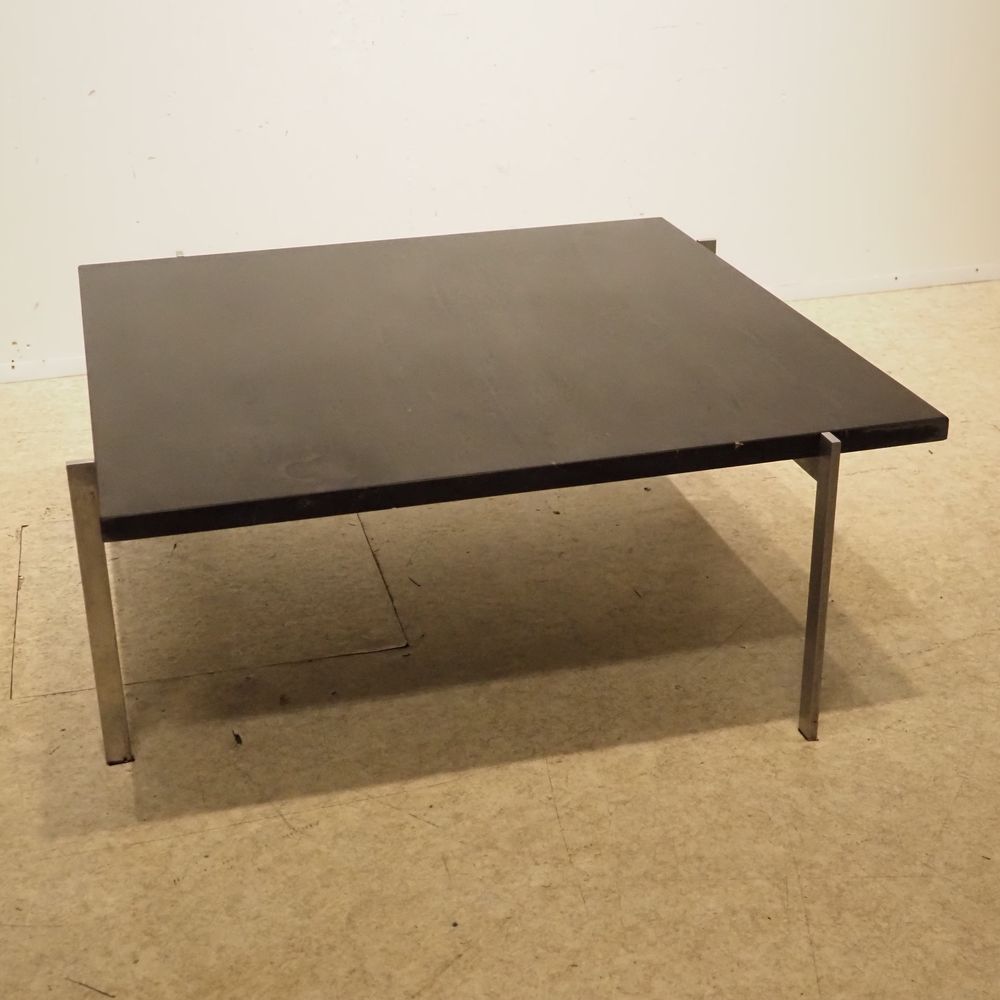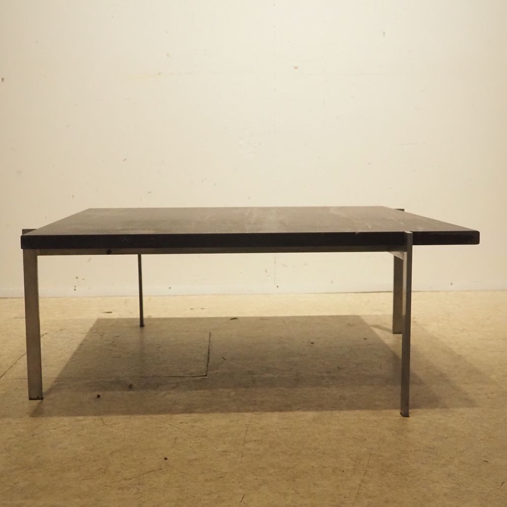 Poul Kjaerholm 1929-1980 / Kold Christensen : Table basse, modèle PK61, plateau carré en marbre noir enchassé dans une structure en acier brossé, estampillé du logo Kold Christensen, (1ère édition), H: 33, L: 80, P: 80 cm