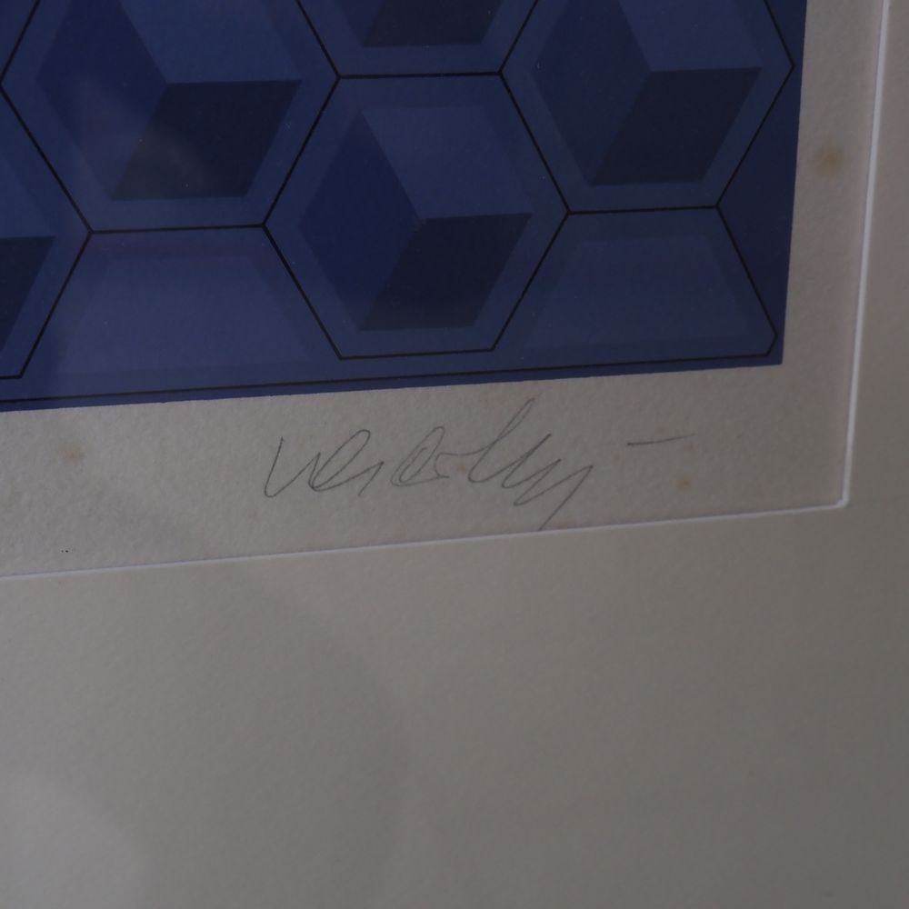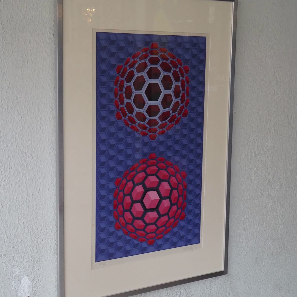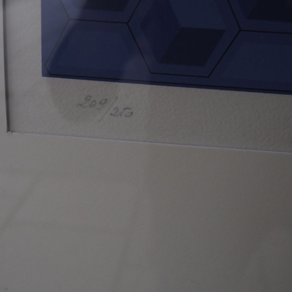 Victor Vasarely 1906-1997 : sérigraphie couleur, composition cinétique, signée au crayon en bas à droite numéroté 209/ 250, dimension image 81 x 46,5 cm
