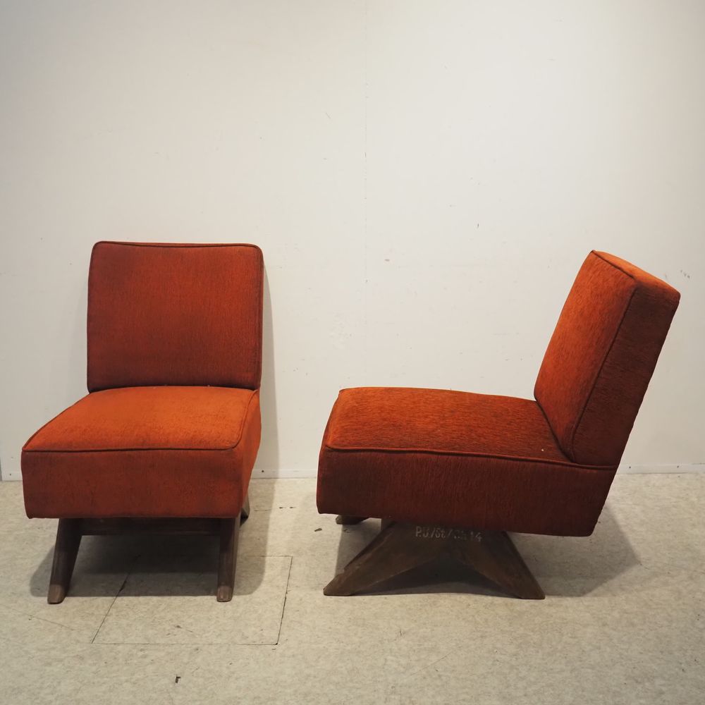 Pierre Jeanneret pour l’Université des sciences de Candigarh : Paire de chauffeuses vers 1960, modèle dit Fire side (coin de feu), H: 42/81, L: 52, P: 85 cm