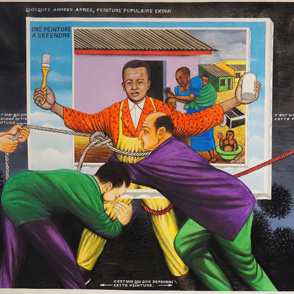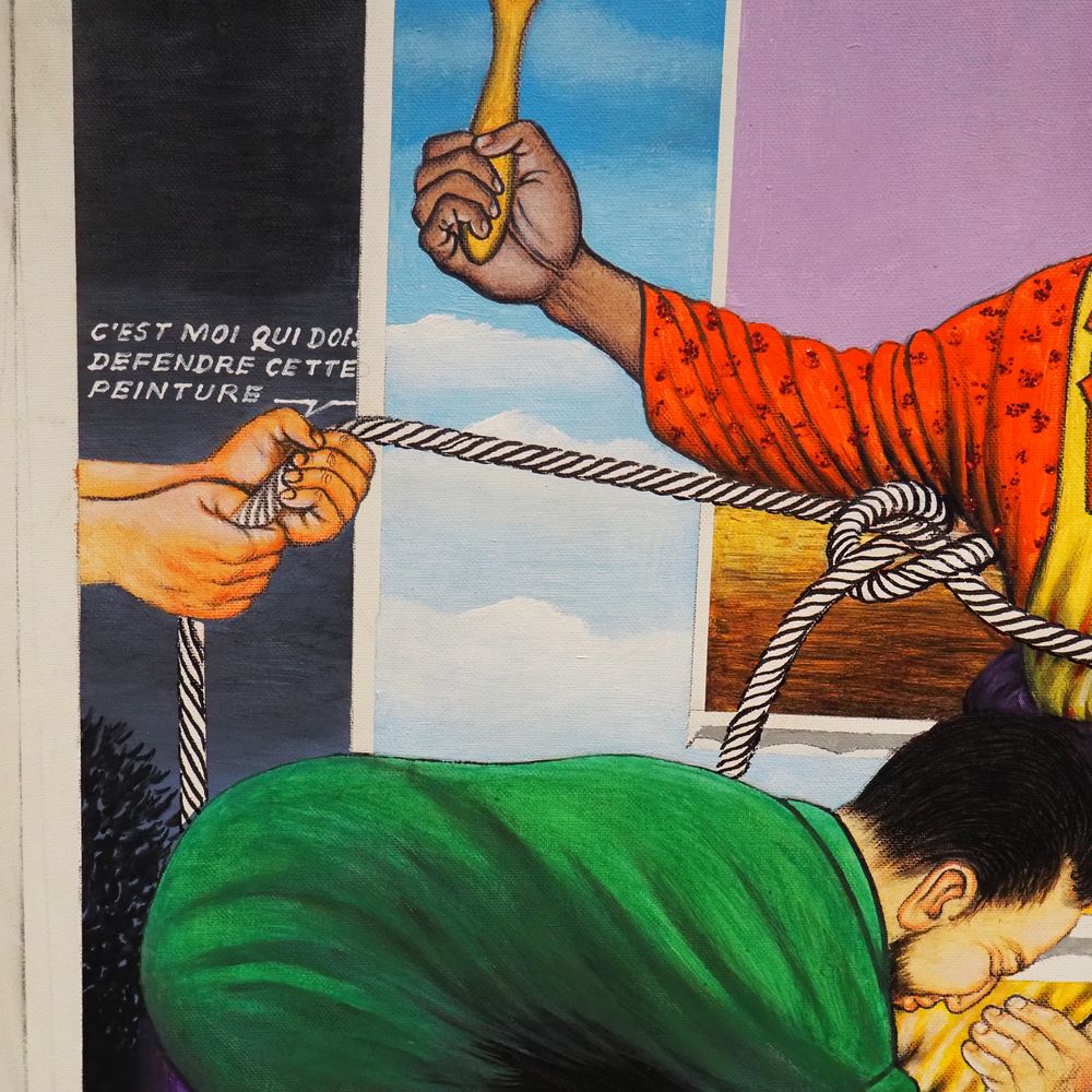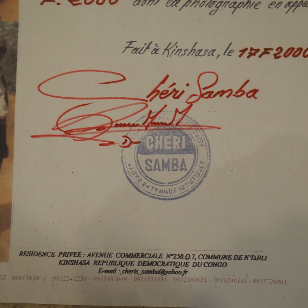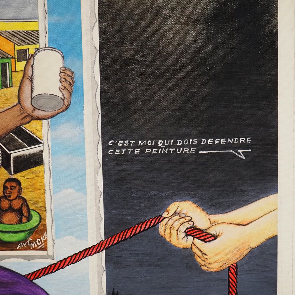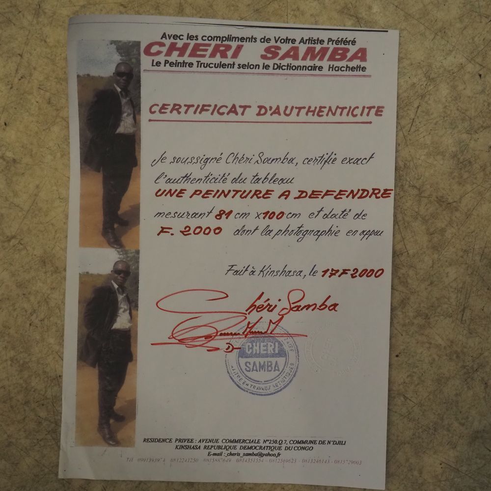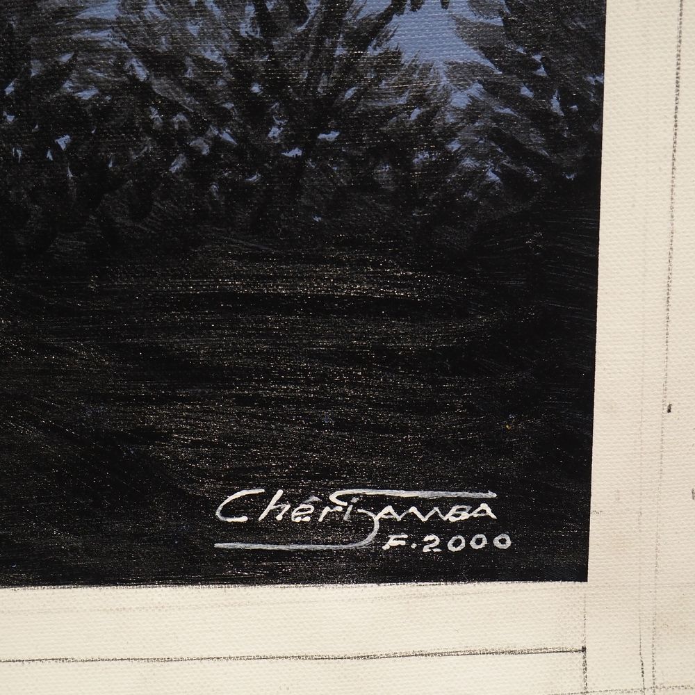 Samba Chéri 1956 : Huile sur toile, avec paillettes de couleur « Une peiture à défendre », signée à droite, datée 2000, avec certificat, dim: 77 x 96 cm (toile sans châssis), (+ 4% de droit suite),