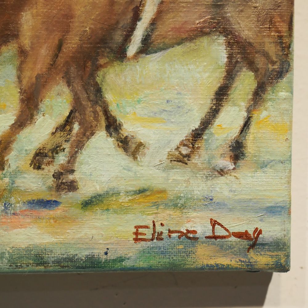 Eline Day : Huile sur toile, course hippique, signée en bas à droite, dim: 24 x 30 cm