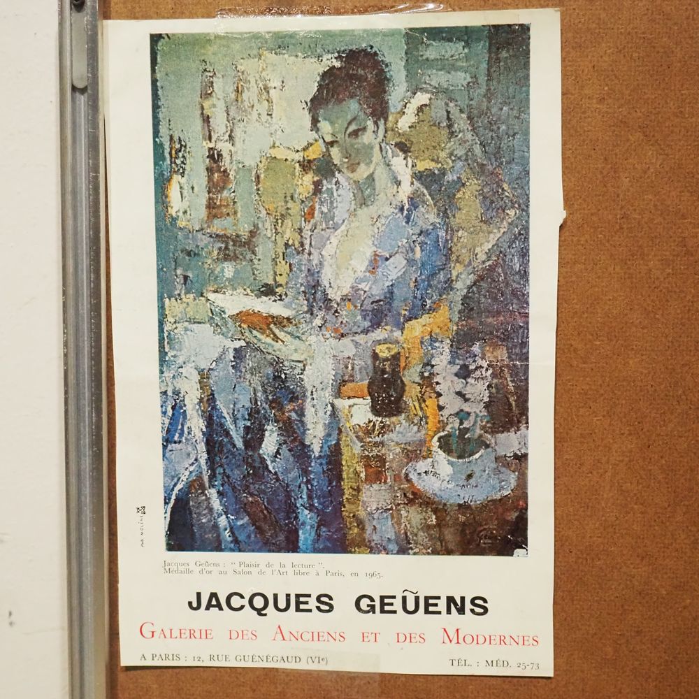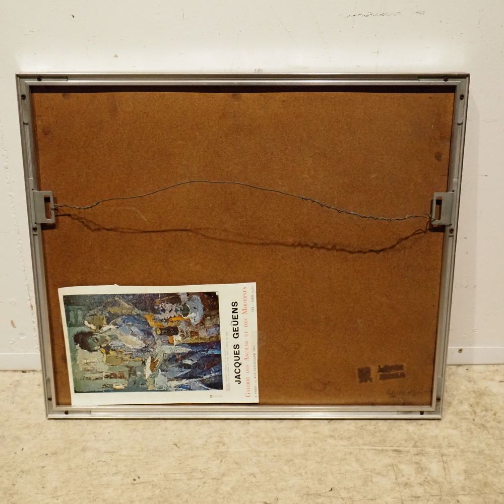 Jacques Geuens : Gouache, nature morte aux fleurs et aux fruits, signée en bas à gauche, encadrée sous verre, dim à vue: 32 x 40 cm
